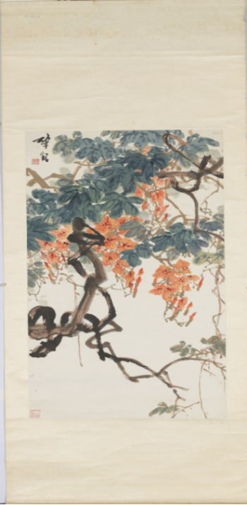 ChineseTrumpetCreeper by Zhang Zhaoming, unknown year, Chinese painting, 97x49cm