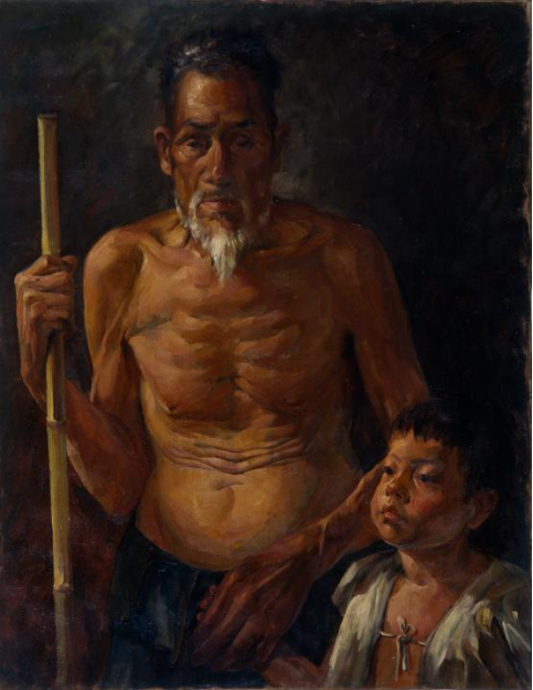 Grandpa and Grandson by Tang Yihe, 1943, oil painting, 84x65cm