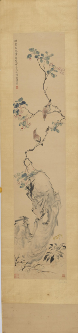 Co-painted FlowerAxis by Tang Yijing et al., late 1920s to mid-1930s, Chinese painting,142x30cm