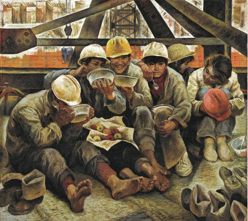 Children of the Dam by Tang Xiaohe and Cheng Li, 1984, oil on canvas, 140x157cm