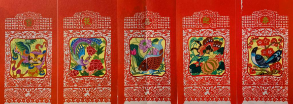 Flowers Celebrating Spring by Zhang Lang, 1980s,Paper cutting, 136x48.7cm