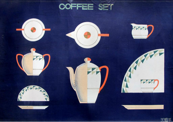 Coffee andTeaSetSeriesDesign by Wang Daoping, 1933-1936, paper painting,73.7x50.2cm