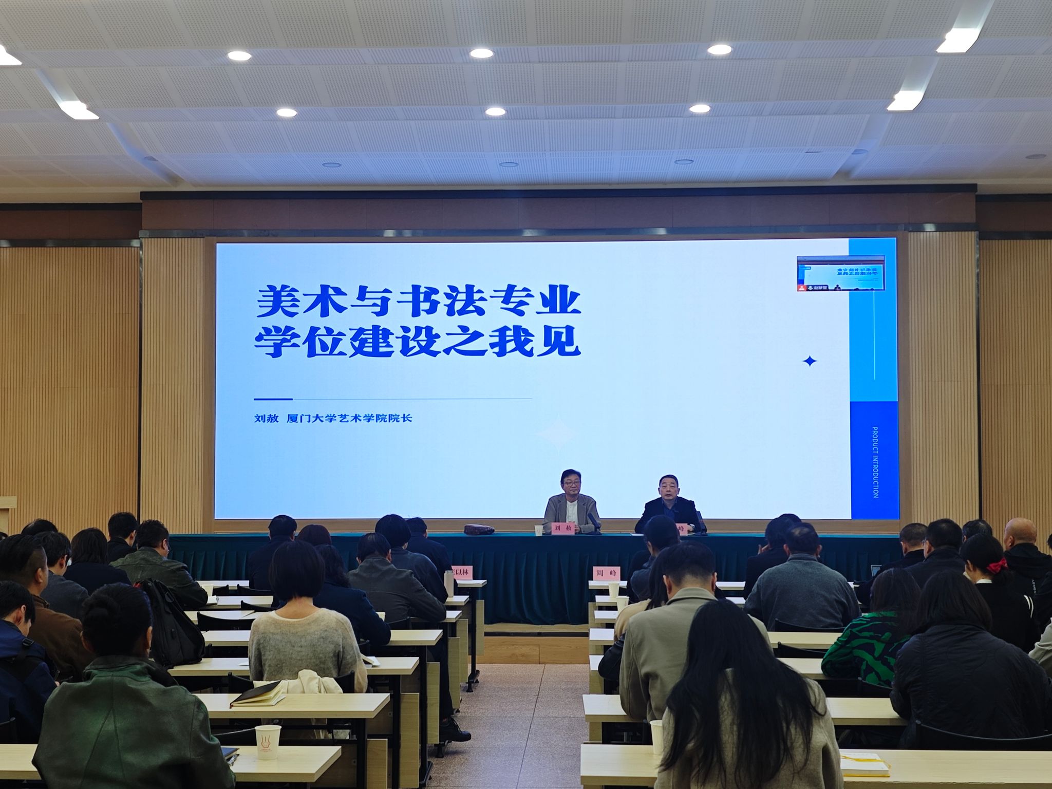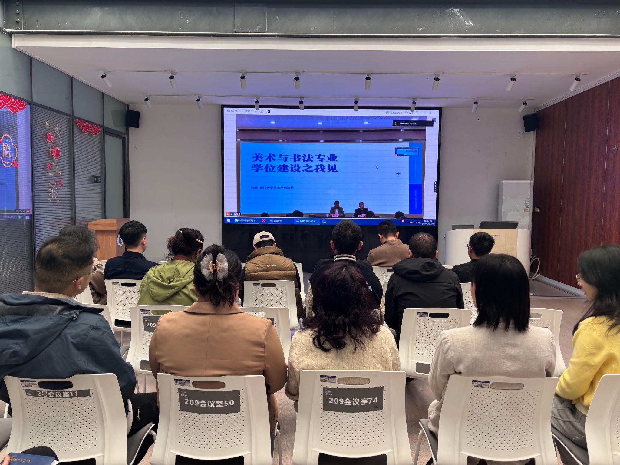 厦门大学艺术学院院长、博士生导师刘赦教授以《美术与书法专业学位建设之我见》为题,以其深厚的理论基础和丰富的实践经验,从凝练特色、人才队伍、科研创作到统筹整合,全面阐述了美术与书法专业学位建设的核心路径,同时,结合学校实际提出了既有建设性又有针对性的意见和建议。专题辅导重点突出、见解深刻,既有顶层设计的高度,又关注地域文化与时代需求,体现了前瞻性与实践性的完美融合,对我校美术与书法专业学位建设工作具有重要的指导意义。