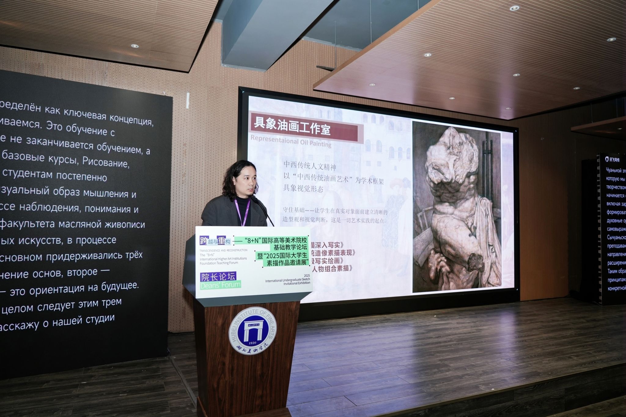 11月5日上午,“跨越与重构——‘8+N’国际高等美术院校基础教学论坛暨2025国际大学生素描作品邀请展”在我校昙华林校区美术馆隆重开幕。本次活动由湖北美术学院主办,湖北美术学院艺术教育学院、科研创作处、教务处、研究生处、国际交流与合作处及中国高等美术院校基础教学联盟联合承办,来自中央美术学院、中国美术学院、广州美术学院、四川美术学院、西安美术学院、鲁迅美术学院、天津美术学院等国内重点美术院校,以及俄罗斯、德国、日本、乌兹别克斯坦等多国艺术院校的专家学者和师生代表参加了本次论坛和展览。