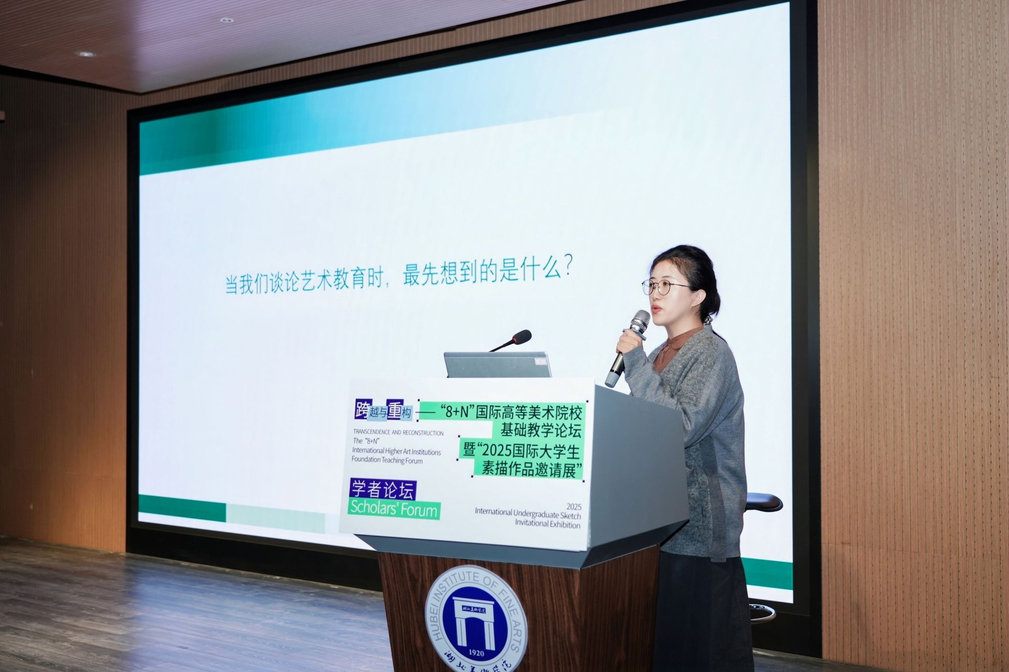 肖莉教授在致辞时指出,本次论坛是聚焦基础教学改革的国际盛会,湖北美术学院始终秉持“厚基础、宽视野、强能力、重创新”的育人理念,积极融合传统与当代、应对数字智能变革,致力于构建面向未来的教学体系。她期待本次论坛能推动基础教学向更深层次的“如何教”与“为何教”转型。