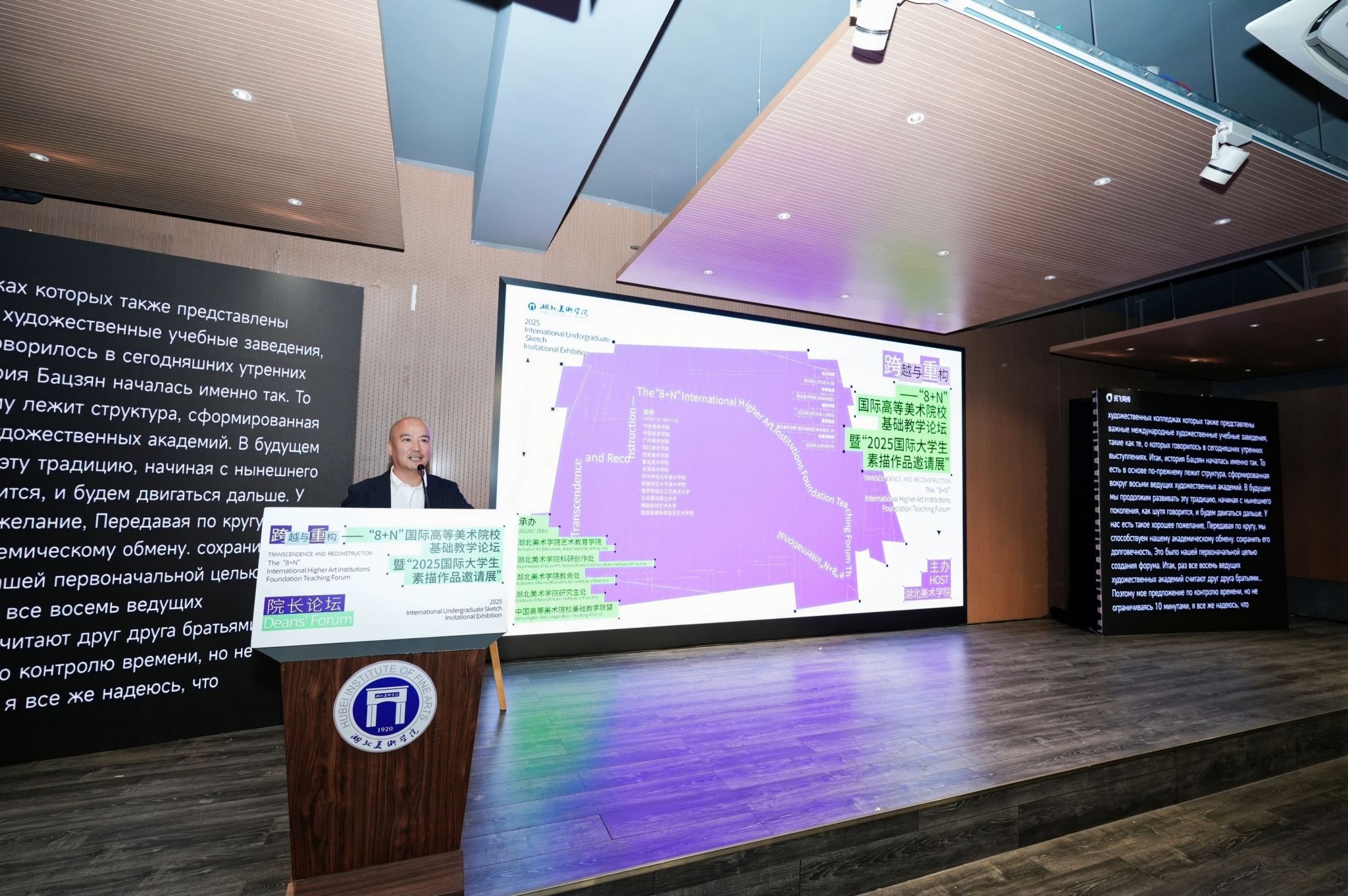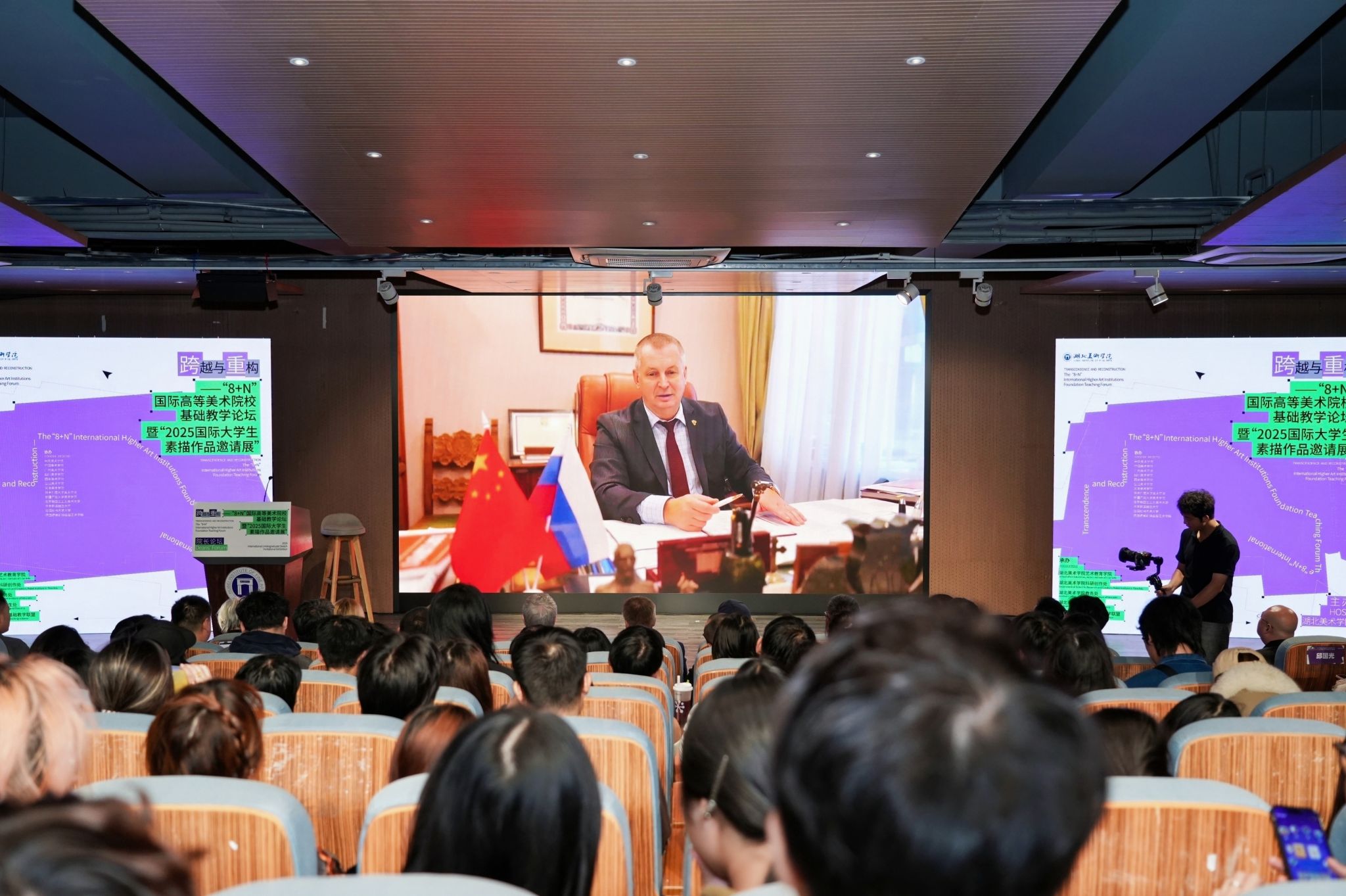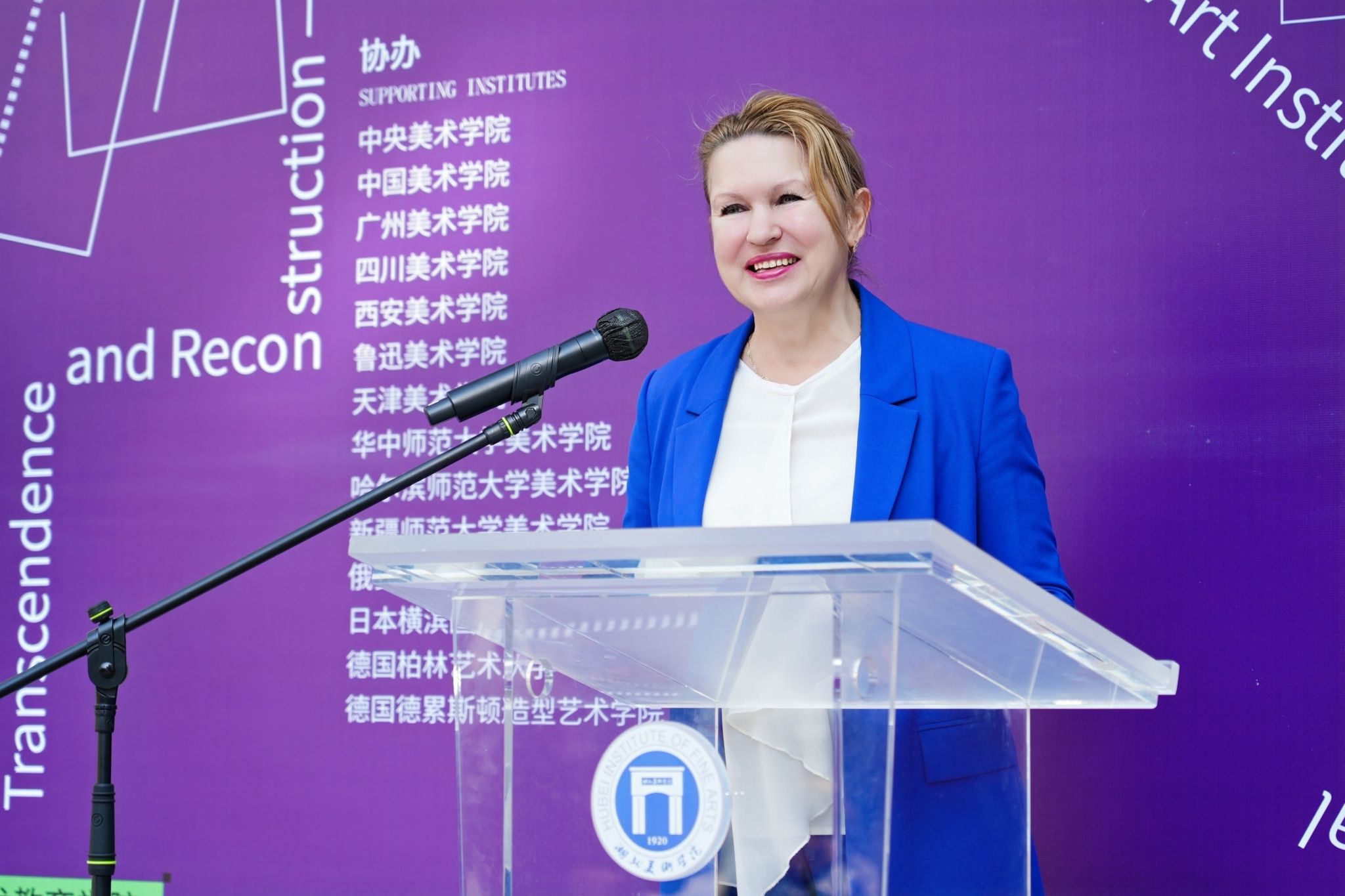 安娜·基斯利齐娜在致辞时表示,穆希娜工艺美术学院拥有近150年历史,与湖北美术学院在艺术教育传统上有相似的发展路径,长期致力于以艺术服务城市文化建设。她欣喜地看到湖北美术学院师生的创造活力,并诚挚邀请中国同行与学生赴俄交流、访学或参与研讨活动。她期待本次展览与论坛促进双方深化合作,共同推动艺术教育面向未来发展。