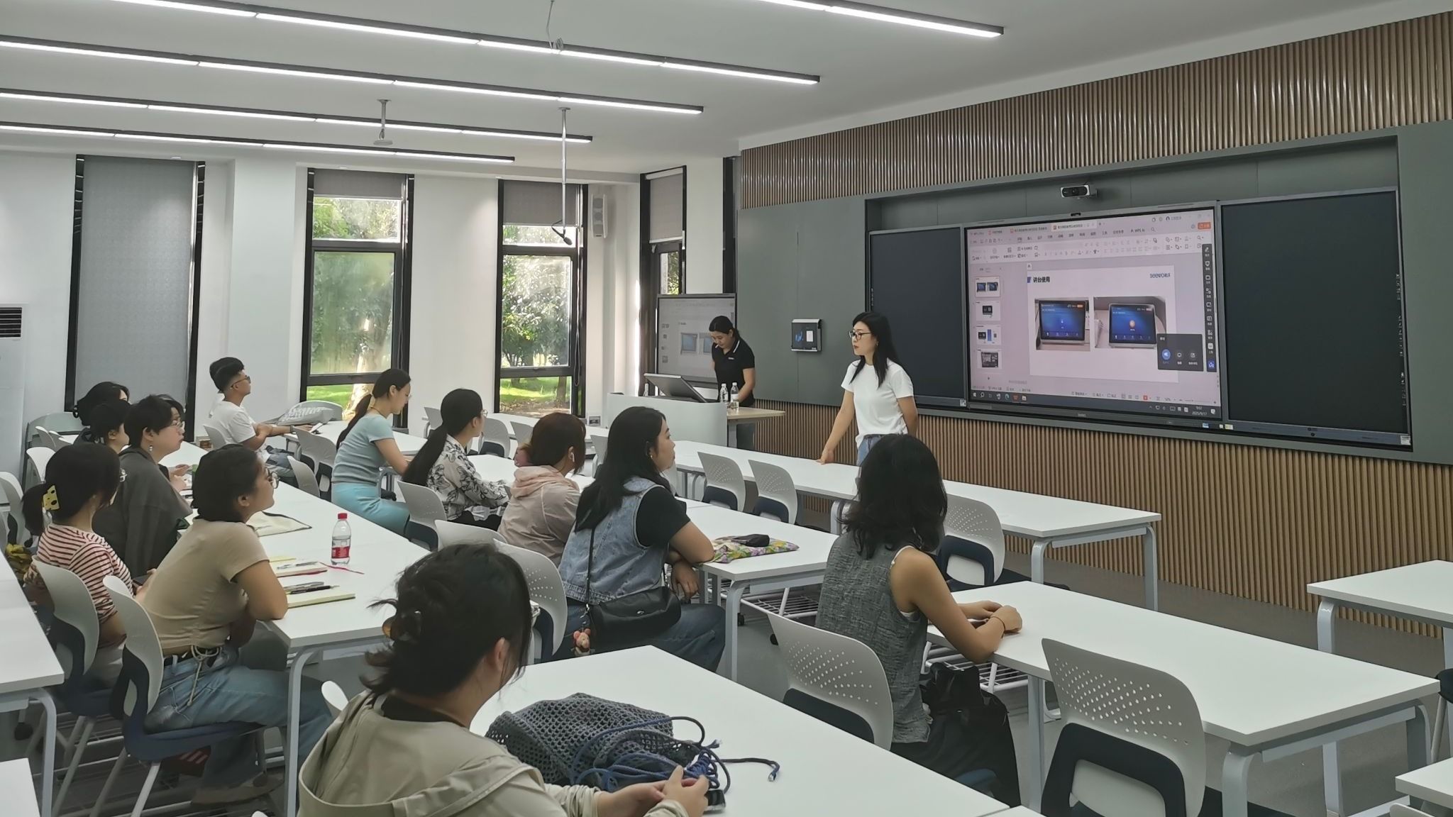 培训会上,教务处副处长饶旋介绍了2025年度智慧教室项目的立项与建设情况。专业技术人员围绕新建智慧教室的核心设备功能、常用操作流程、多媒体互动教学应用及常见注意事项等内容,进行系统讲解和现场演示,帮助参训教师全面掌握智慧教室的各项功能与使用技巧。现场设置了答疑交流和实际操作体验环节,教师们认真聆听、积极互动、动手演练,有效提升了设备应用和实操能力。