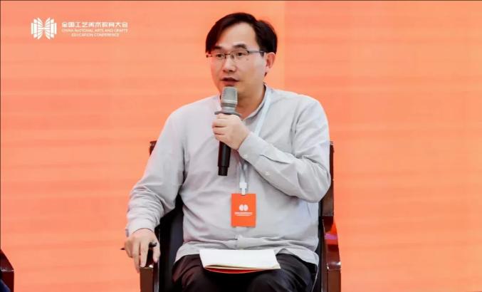 手工艺术学院副院长陈日红在学术对话中分享了湖北美术学院在传统工艺现代化转型中的实践经验。他谈到,在湖北美术学院百年手工艺教育中,始终以“守正、创新”为使命,长期以“传承—创新—转化”为教育核心,构建“大师进校园、学科交叉融合、产学研协同”三位一体模式。学院承续工艺美术教育深厚学脉、深耕荆楚工艺文化,通过引入国家级工艺美术大师、非遗传承人等资源,培育出多位省级大师。面对时代变革,以数智技术赋能传统工艺,推动传统技艺与现代设计和人工智能深度融合, 实现优秀传统文化的创造性转化与创新性发展;与此同时保留手艺的温度,将其介入现代生活,让工艺美术成为生活的艺术。