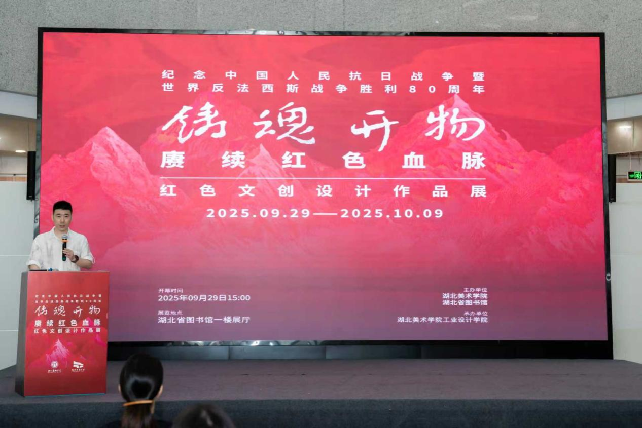 9月29日下午,湖北美术学院“铸魂开物 赓续红色血脉——红色文创设计作品展览”开幕式在湖北省图书馆一楼展厅隆重举行。湖北省图书馆相关部门负责人、湖北美术学院工业设计学院党委副书记赖慧蓉,以及工业设计学院师生代表共同出席。开幕仪式由湖北美术学院工业设计学院院长助理王康主持。