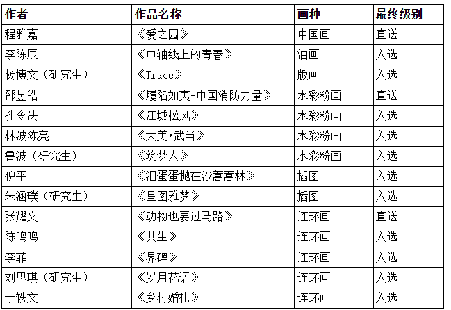 第八届全国青年美术作品展览复评结果揭晓,湖北美术学院共有14件作品入选。涵盖中国画、油画、版画、水彩粉画、插图、连环画等画种,彰显学校高质量创作成果。