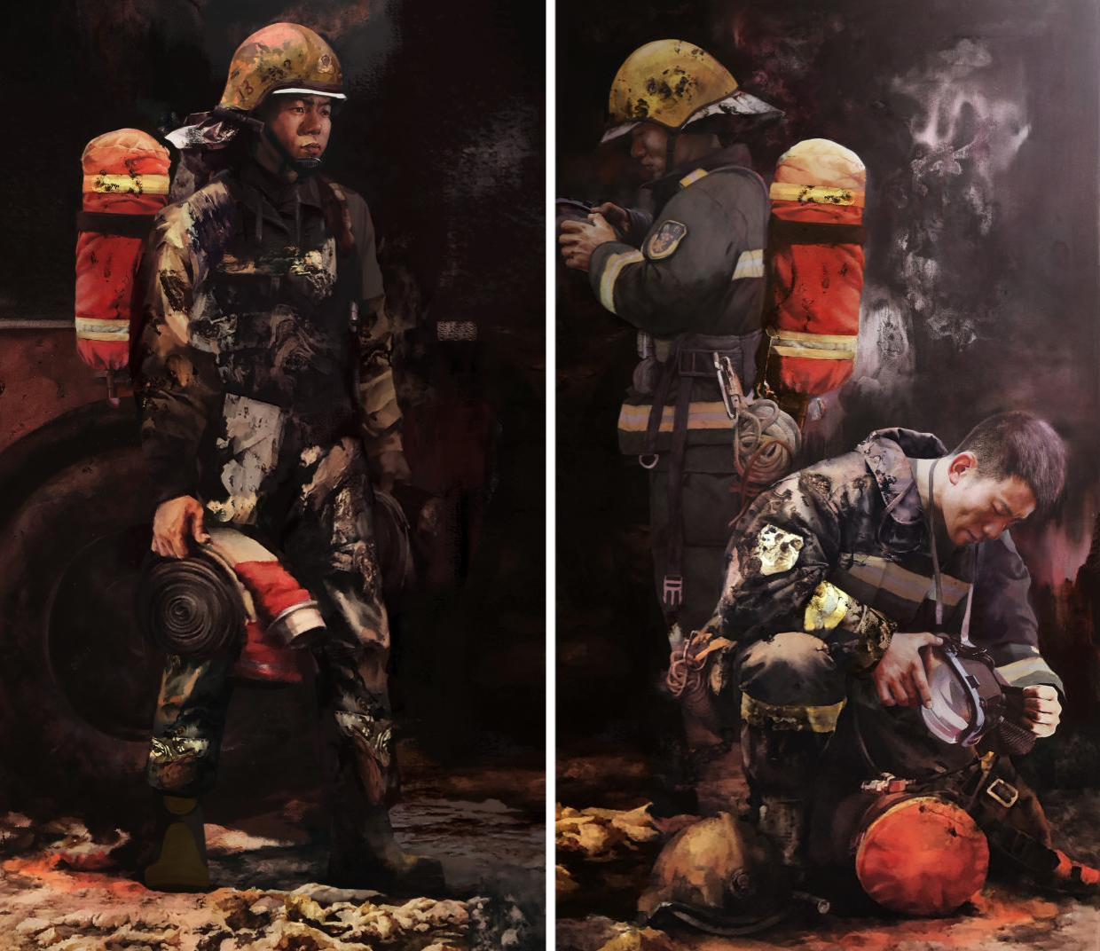 邵昱皓《履陷如夷-中国消防力量》水彩粉画170×150cm 2025