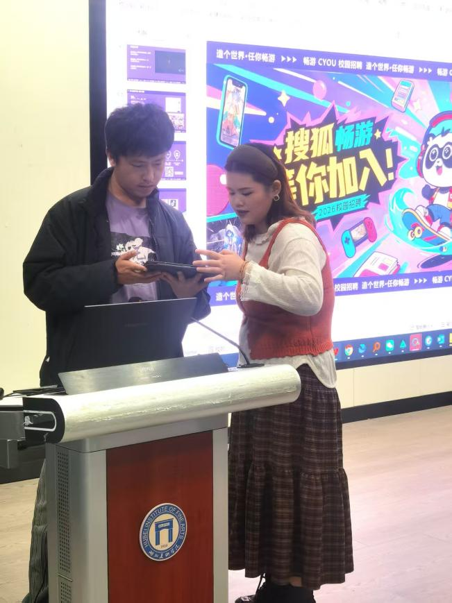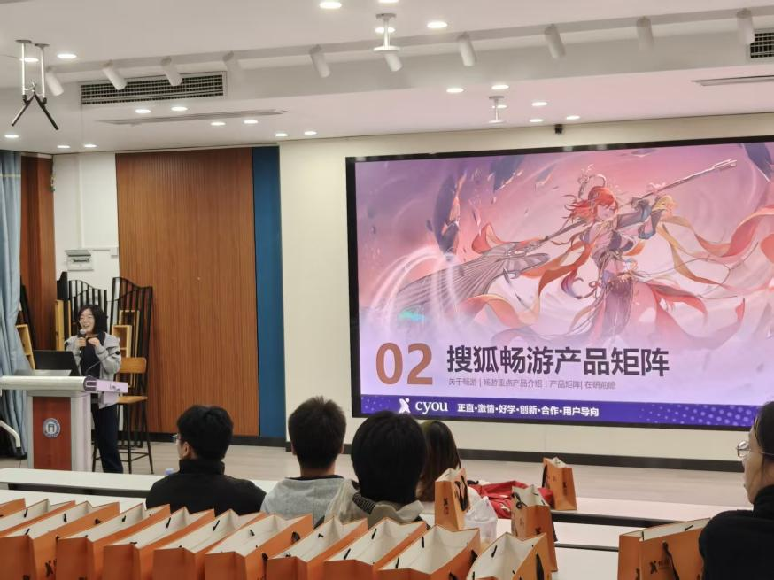 宣讲会上,搜狐畅游人力资源团队从中国游戏市场情况、公司产品矩阵、产品美学设计三个方面为学生们解析了企业业务。宣讲环节,搜狐畅游人力资源团队围绕行业趋势、产品布局与人才需求展开分享,重点强调游戏行业对动画设计、场景美术、视觉创意等岗位的迫切需求,而这些需求与影视动画专业的核心培养方向高度匹配。团队以《天龙八部》《西游:笔绘西行》等代表性产品为例,说明作品研发中对动画制作、美学设计的专业要求,让学子清晰看到自身专业在行业中的应用场景与发展空间。