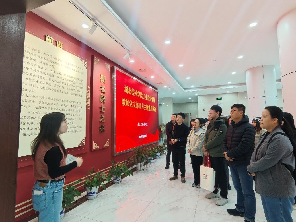 为深化党的创新理论学习,推动党建与业务深度融合,10月30日,我校工业设计学院教师党支部赴湖北省院士专家联络服务中心(以下简称省院士中心)开展“锐意进取、埋头苦干,奋力谱写中国式现代化更加绚丽的篇章”联学共建主题党日活动。学院全体教师党支部教师参加活动,省院士中心办公室主任朱秀荣、院士服务部部门负责人舒玥、院士服务部余诗敏参加活动。活动由工业设计学院教师党支部支部书记赵飞主持。