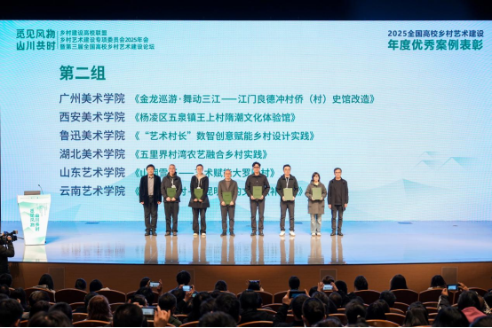 11月1日至2日,乡村建设高校联盟乡村艺术建设专项委员会2025年会暨第三届全国高校乡村艺术建设论坛在成都大学东盟艺术中心多功能厅举行,我校环境艺术学院申报的《五里界村湾农艺融合乡村实践》研究项目获评2025全国高校乡村艺术建设年度优秀案例。