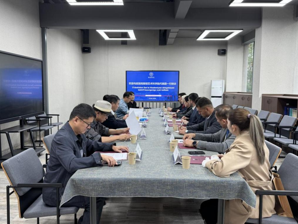 11月5日,乌兹别克斯坦艺术科学院代表团到访湖北美术学院中国画学院,通过实地参观、学术座谈、文化互赠等系列活动,搭建中乌艺术交流合作桥梁,助力两国文明互鉴。湖北美术学院党委常委、中国画学院院长郝孝飞,中国画学院副书记陈捷、副院长朱国栋,系主任及骨干教师全程陪同参与。