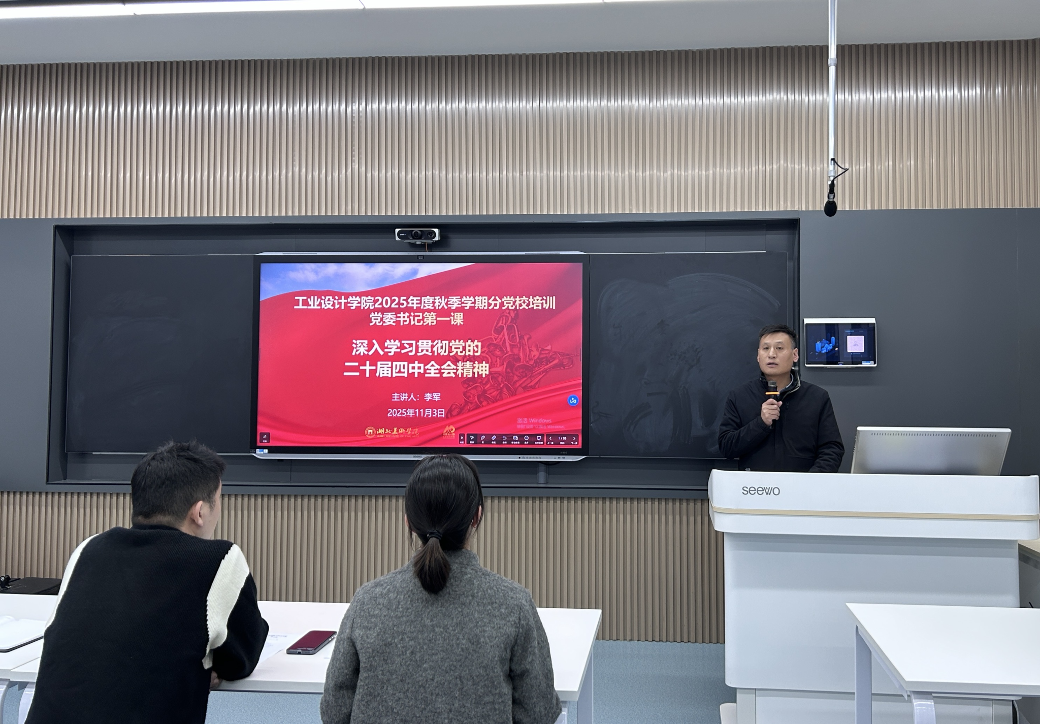 在开班仪式暨党委书记讲授第一课上,工业设计学院党委书记李军讲授《深入学习宣传党的二十届四中全会精神》专题党课,从为什么学、学什么、怎么学三个方面做了详细说明,并对照《中国共产党第二十届中央委员会第四次全体会议公报》进行逐句学习。他带领学员系统回顾了“十四五”时期国家治理取得的显著成就与宝贵经验,学习“十五五”时期经济社会发展的指导思想、遵循原则、主要目标、实现路径,围绕相关内容结合案例做了探讨交流。他对在场学员提了三点期望,一要学深悟透,自觉筑牢思想政治根基;二要学以致用,主动服务中心工作;三要严守纪律,守住清正廉洁的政治本色。