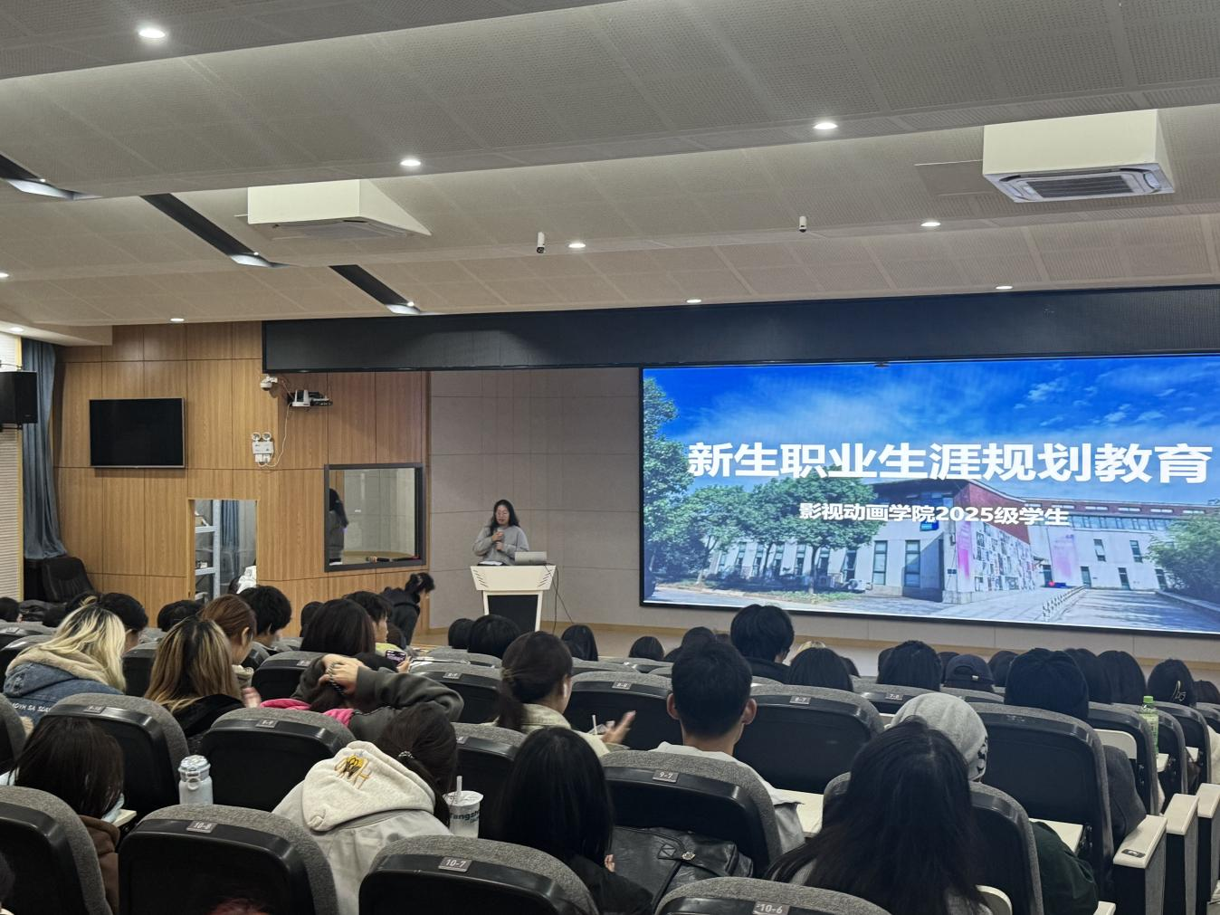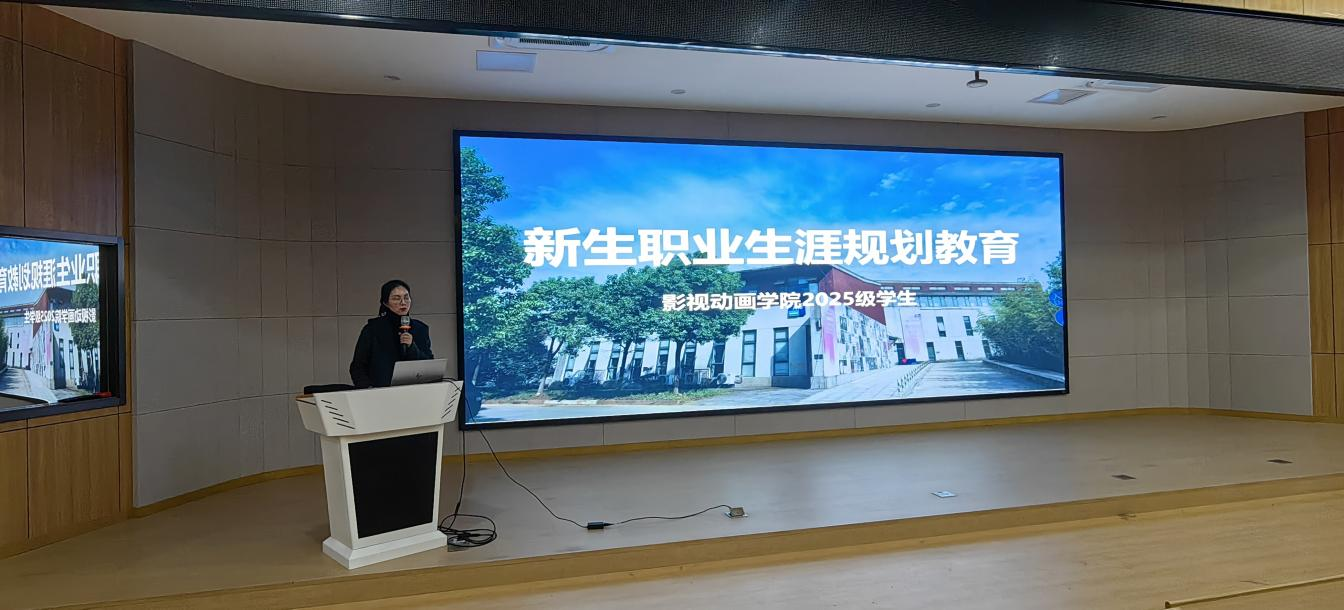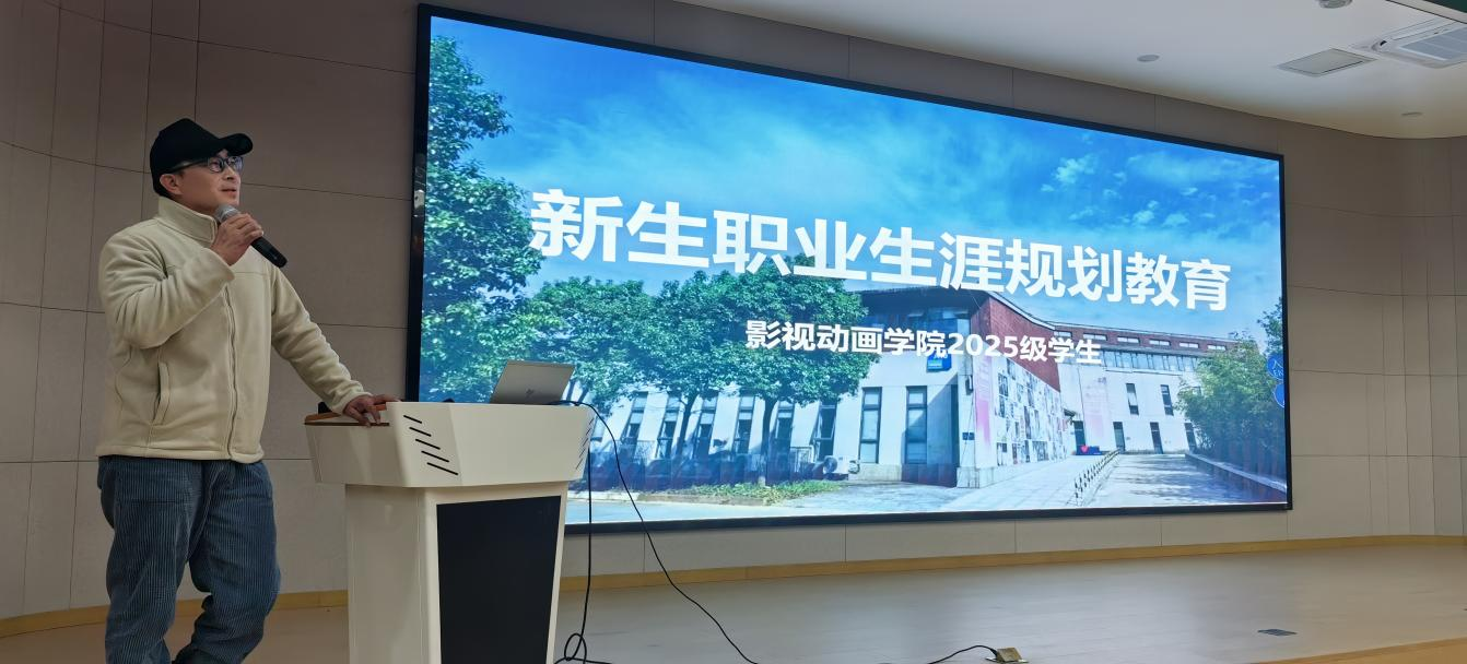 11月10日晚,影视动画学院2025级新生职业生涯规划教育讲座在A12-115教室举行。影视动画学院党委副书记杨梓、实验室主任靖亮、北京天工辰星科技有限公司运营总监牛安妮、学院优秀毕业生张晓颖及2025级全体新生共同参与。本次讲座以“明确职业方向、提升职业素养”为核心,通过行业趋势解读、成长经验分享与实践指导,助力新生规划职业路径,切实提升其对影视动画行业的认知与未来发展竞争力。活动由影视动画学院辅导员康博文主持。