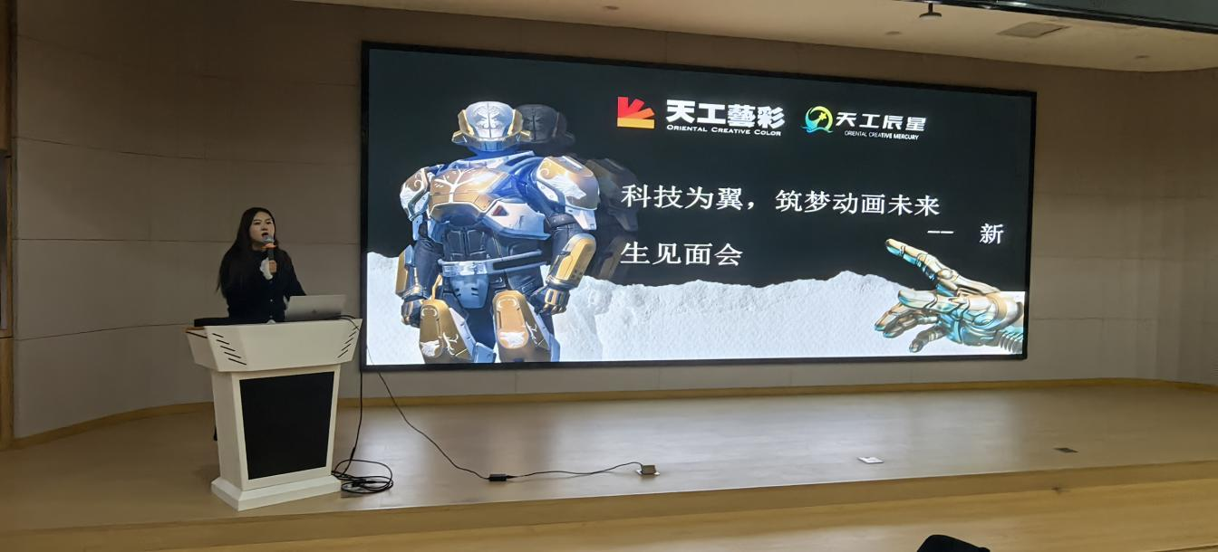 牛安妮以“科技为翼——筑梦动画未来”为主题,深入剖析了科技在影视动画行业的应用与发展,展示了科技如何为动画创作赋能。此外,她还结合企业人才招聘标准,为新生解读行业核心能力需求,指导新生围绕技术发展趋势制定学习计划,把握行业机遇、提升竞争优势。