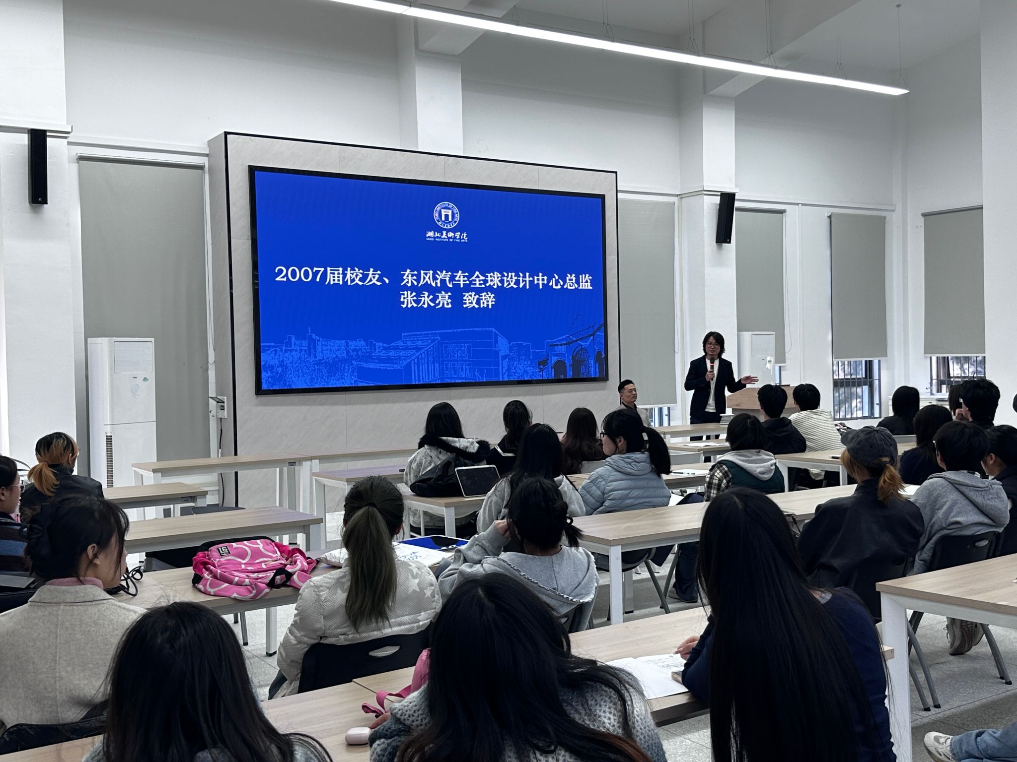 11月13日下午,东风汽车全球设计中心专场招聘宣讲会在湖北美术学院藏龙岛校区A6教学楼209报告厅举办。我校2007届校友、东风汽车全球设计中心总监张永亮,东风汽车全球设计中心党总支副书记兼猛士品牌负责人祝涵,湖北美术学院招生就业处处长罗睿,湖北美术学院工业设计学院党委书记李军、副院长杨艺、党委副书记赖慧蓉、院长助理王康等出席。工业设计学院百余名毕业生参加活动。