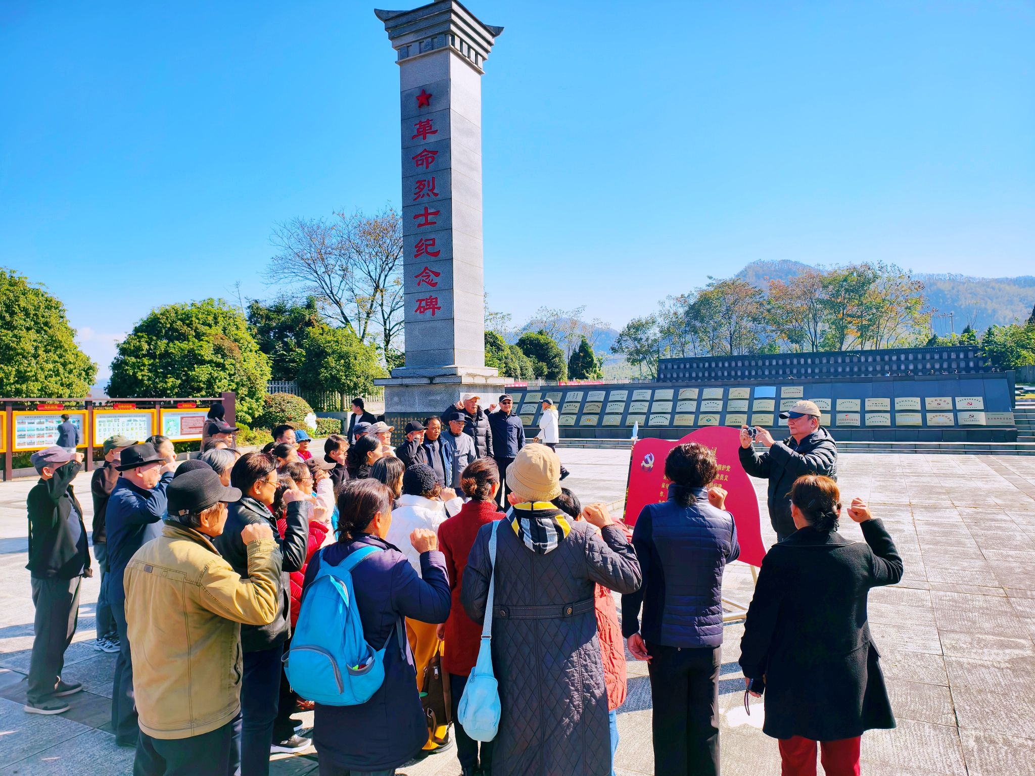 11月20日上午,党员一行首先来到赤壁市羊楼洞瞻仰抗美援朝烈士陵园,集体上了一堂生动的革命历史课。羊楼洞抗美援朝烈士陵园是国内三大抗美援朝烈士的集中安葬地之一。全体党员在烈士纪念碑前整齐列队,鞠躬默哀,表达对先烈的深切缅怀;面对鲜红的党旗,老党员们佩戴党员徽章,高举右手,庄严宣誓,重温入党时的初心与承诺。通过了解抗美援朝战争的历史背景和烈士们的牺牲经历,老党员们更加深刻地认识到“中国共产党为什么能、马克思主义为什么行、中国特色社会主义为什么好”。