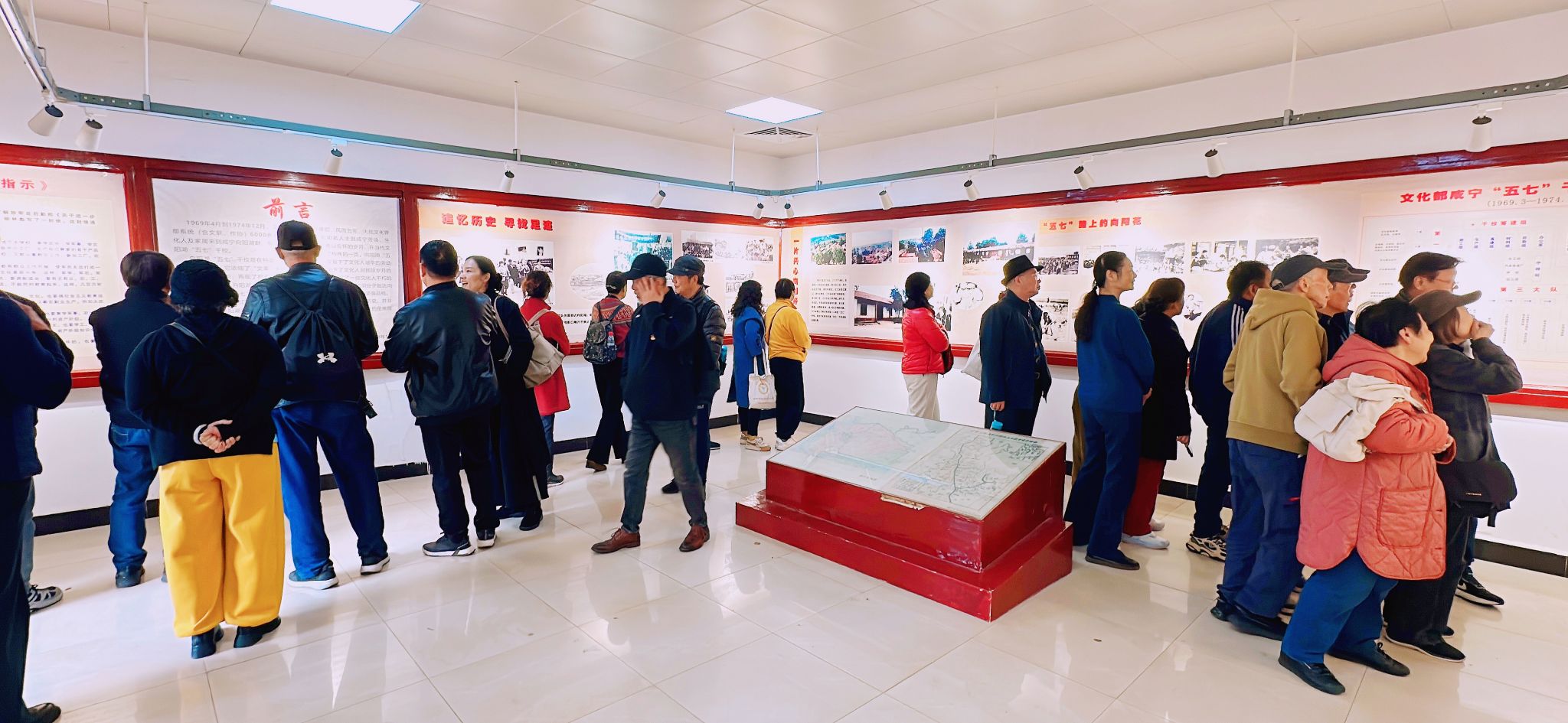 下午,前往咸宁原文化部“向阳湖五七干校”参观学习。干校现已成为全国重点文物保护单位,被称为“向阳湖文化名人旧址展览馆”。“五七干校”是20世纪60年代至70年代特殊历史时期设立的干部劳动改造与学习基地,旨在通过生产劳动和思想教育实现“改造世界观”的目标。其旧址和博物馆不仅是历史记忆的载体,更是传承红色基因、强化纪律意识的重要教育场所。在向阳湖五七干校文化名人旧址,通过学员自建平房、宣传画等实物,感受“以苦为荣”的精神力量。退休党员们普遍反馈,通过参观深刻体会到“共产党员的信念不能丢”。