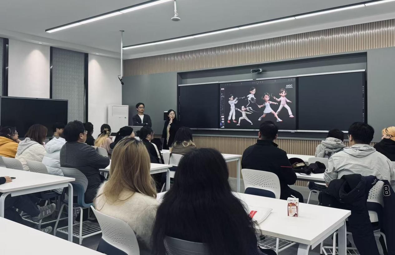 11月19日,代表团到访我校影视动画学院。影视动画学院党委书记蒋禄宇、系主任汪昊以及教师崔成共同参与座谈。双方就动画教育理念、课程设置及未来合作可能性进行了深入交流。座谈结束后,代表团参观了学院的教学设施与校园环境。下午的学术工作坊由我校崔成老师与韩瑞大学宋美妍教授联袂主持,以“AIGC的图像、视频及音乐生成”为主题,向在场师生分享了最新技术动态与应用案例。