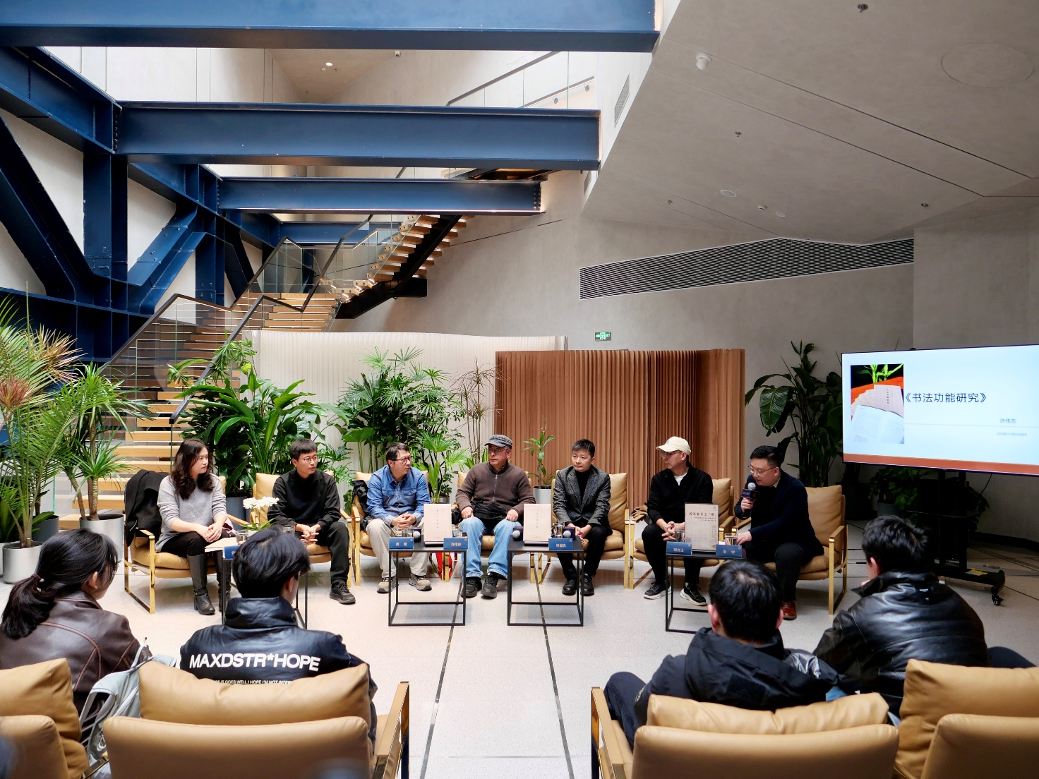 11月23日下午,“书法有什么用——许伟东《书法功能研究》新书发布会暨分享对谈会”在武汉SKP RENDEZ-VOUS书店隆重举办。湖北美术学院艺术人文学院许伟东教授、华中师范大学柳国良教授,湖北大学刘立士副教授,湖北美术学院中国画学院周赞副教授、教师孔令情、教师许金凌等共同出席该交流活动。武汉多家高校的青年学子和热心的市民朋友共70余人参与了分享会。活动由湖北美术学院教师辛宇主持。