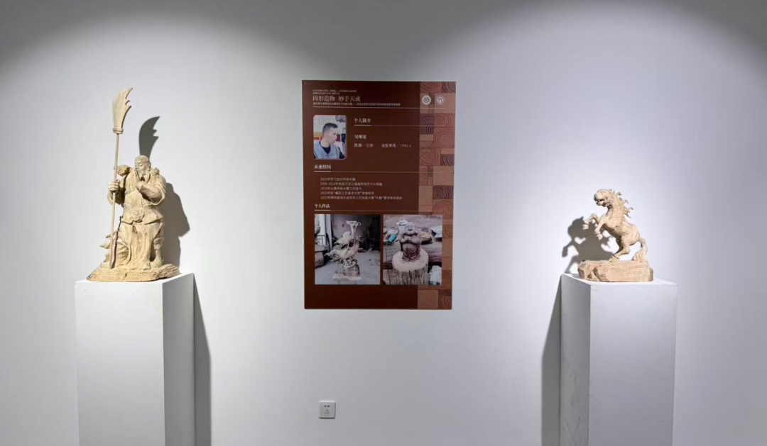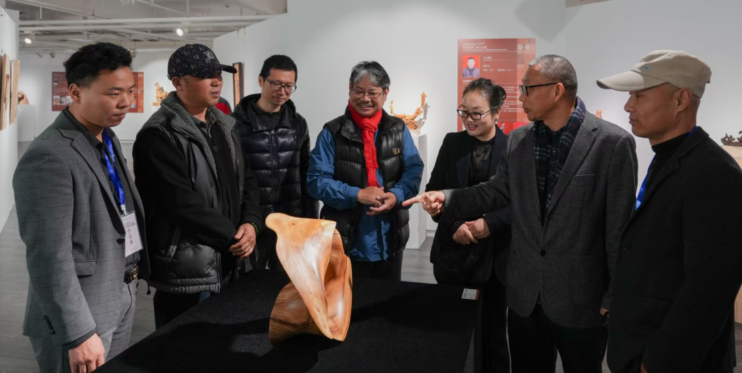 仪式结束后,大家移步至展厅。一件件精美的木雕作品,或古朴厚重,或新颖灵动,在灯光下诉说着“刀木相迎”的故事。嘉宾与观众们驻足于前,细细品味传统技艺与现代审美在方寸木料上的精彩对话。