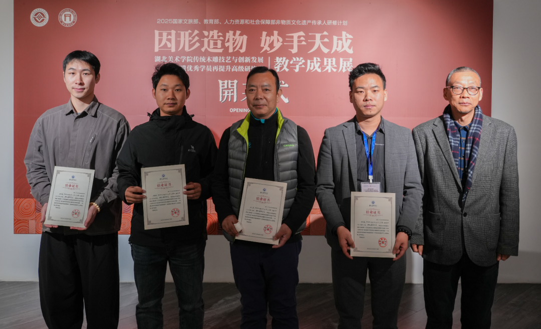 在证书颁发环节,湖北美术学院创新学院书记李宁、彭柱武组织员、继续教育与培训学院何明院长以及李志敏主任依次为学员们颁发了结业证书。这份证书,不仅是对过去一月辛勤学习的认可,更是通往未来艺术之路的通行证。