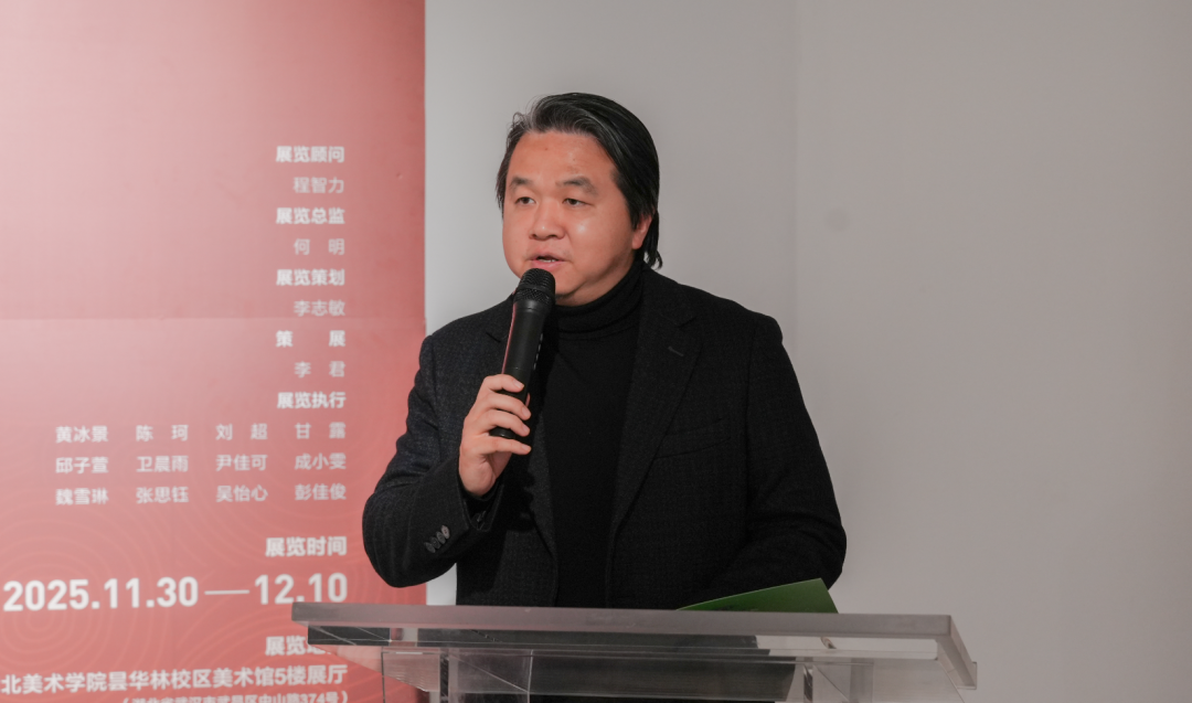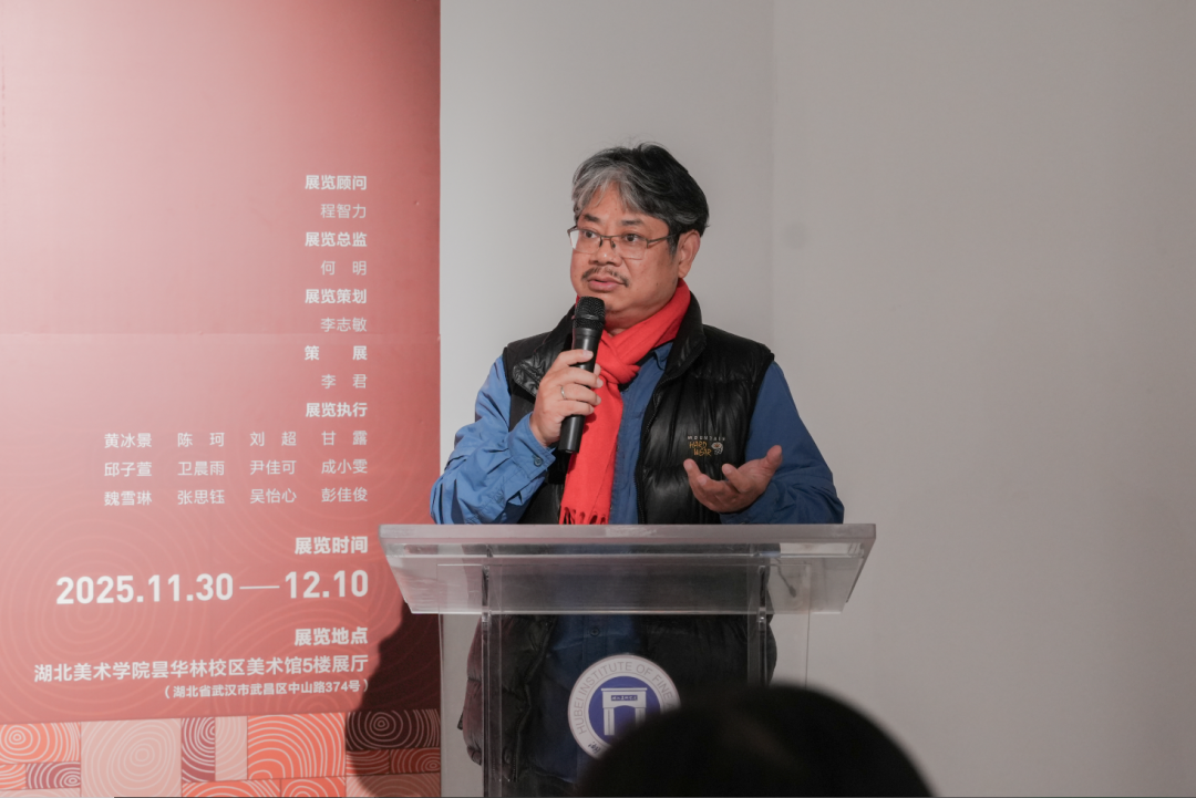 湖北美术学院继续教育与培训学院院长何明详细介绍了本次研修班的办学历程。他从“理论奠基、实践驱动、文化溯源、创新转化”四个维度,回顾了从课堂研修到东阳考察,再到楚文化主题创作的完整教学闭环,对学员们的钻研精神与创作热情给予了高度评价。