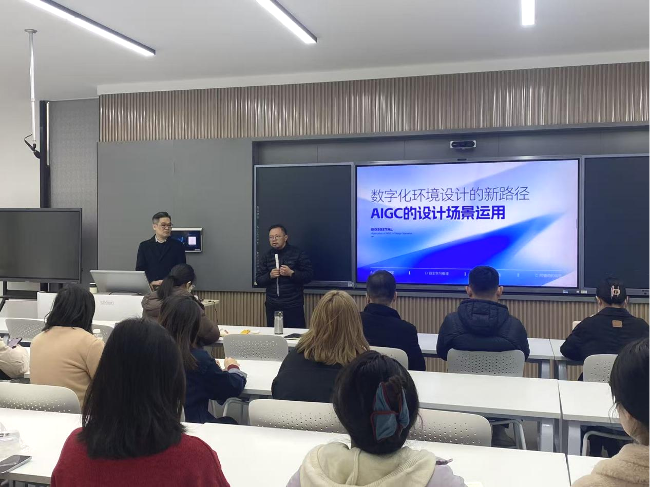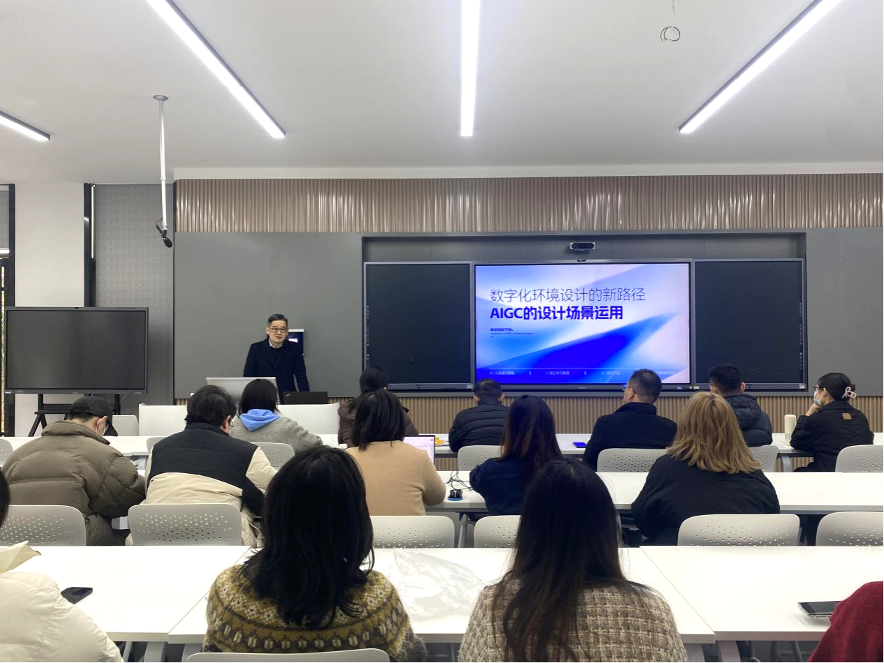 为顺应数字化变革与教育创新趋势,推动设计教育与前沿科技深度融合,12月3日下午在A8-107教室,环境艺术学院邀请华中科技大学设计学院环境设计系主任王祖君教授以“数字化环境设计的新路径——AIGC的设计场景运用”为主题开展学术讲座。环境艺术学院教师参加讲座,讲座由环境艺术学院院长何凡主持。