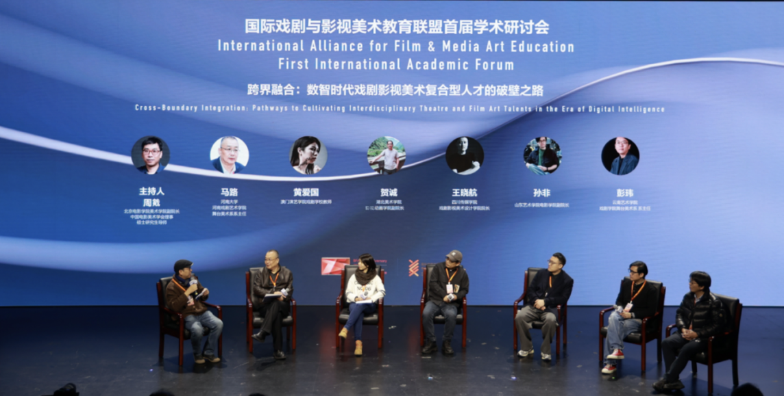 成立大会结束后,首届联盟国际学术研讨会如期举行。研讨会围绕“创新・传承・协同”主题,聚焦数智时代戏剧影视美术教育的前沿趋势与发展路径。在学术对话环节,与会专家围绕《范式革命:数智驱动下戏剧与影视美术教学的体系构建》《教研共生:高校戏剧与美术教育的数智化建设与教研创新》等核心议题展开了热烈讨论。其中,贺诚作为嘉宾参与《跨界融合:数智时代戏剧影视美术复合型人才的破壁之路》议题讨论,分享了我院学科专业建设思路和戏剧影视美术专业未来发展与建设的看法。