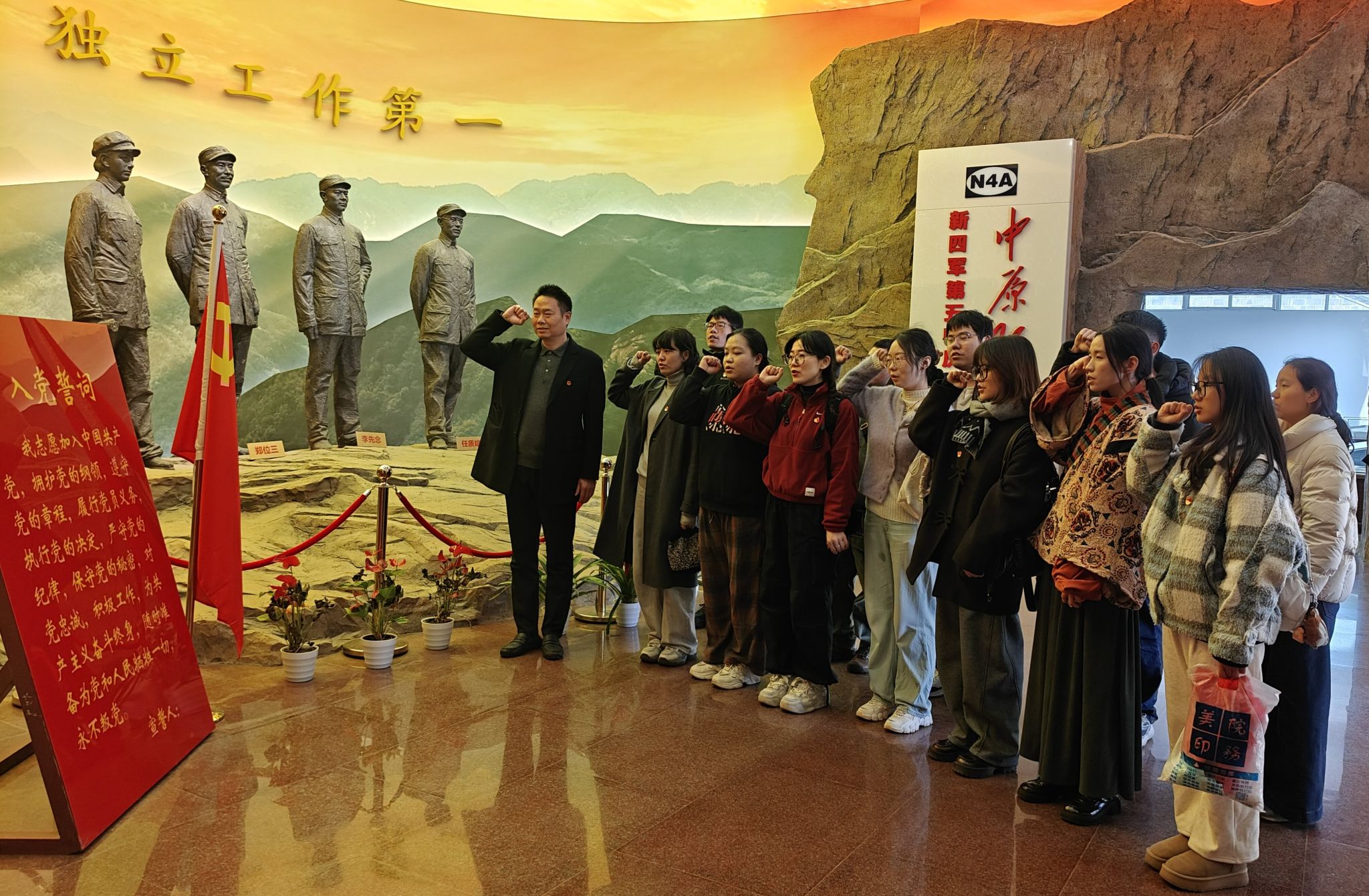 白果树湾曾是抗战时期新四军第五师的指挥中心。师生党员首先参观新四军第五师纪念馆,通过历史资料、实物展陈与场景复原,深入了解李先念等革命先辈在鄂豫皖湘赣地区领导抗日斗争的艰苦历程。馆内记载的1.32万余名英烈事迹,让党员们深刻感受到革命先辈的家国情怀。