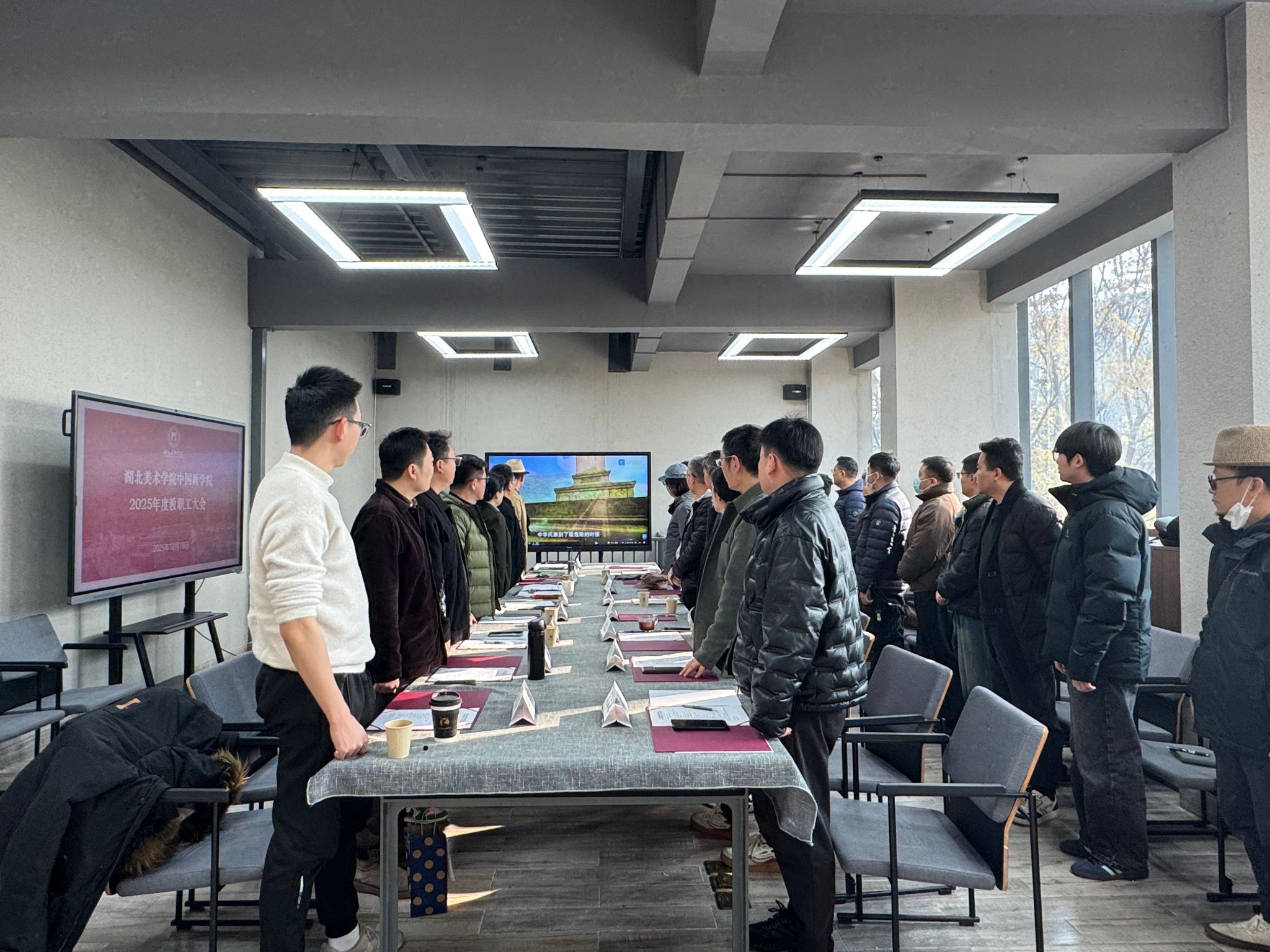 校党委常委、中国画学院院长郝孝飞作总结讲话。他首先感谢全院教职工一年来的辛勤付出。他指出,2025年是学院的“丰收年”,横向经费、国家级课题和展览入选数量均创历史新高,这些成绩的取得得益于全院上下的团结协作,他鼓励全体教职工以昂扬姿态迎接2026年新的挑战,并强调学院将认真吸纳本次大会的意见建议,落实各项改进措施,持续推动学院高质量发展。