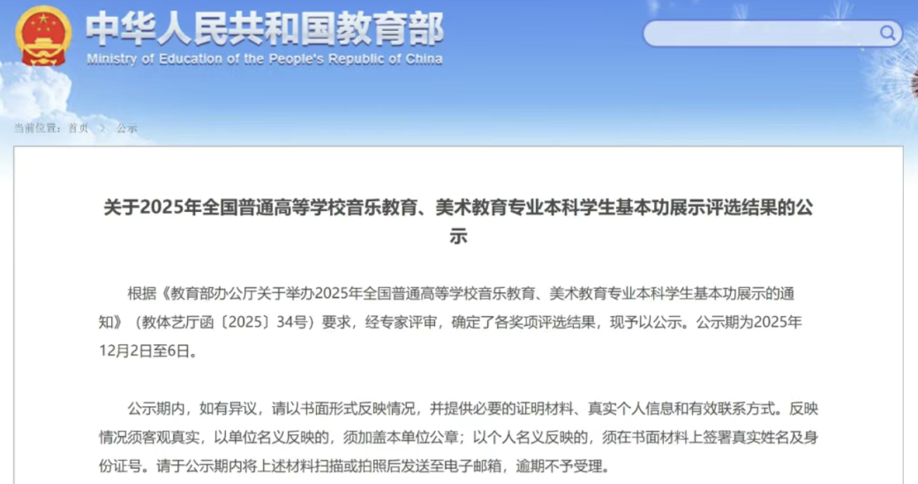 2025年全国普通高等学校美术教育基本功大赛个人全能三等奖(主办:教育部体育卫生与艺术教育司)