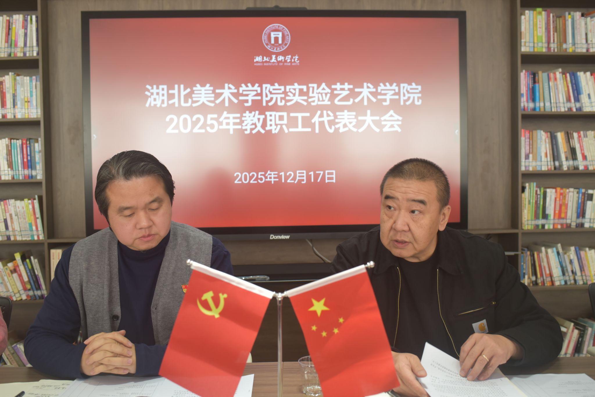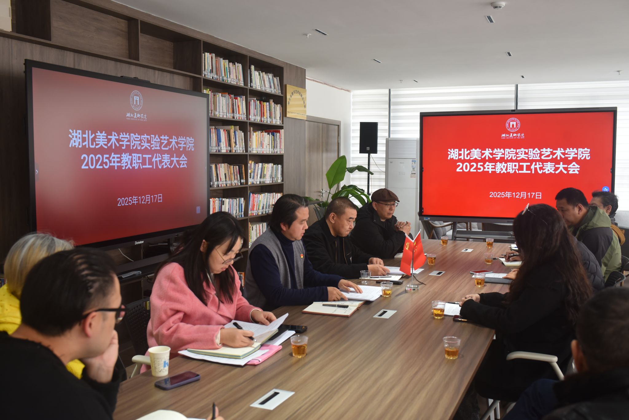2025年12月17日下午,湖北美术学院实验艺术学院在201会议室召开2025年度教职工代表大会。会议由学院党委书记李宁主持,全体教职工出席。