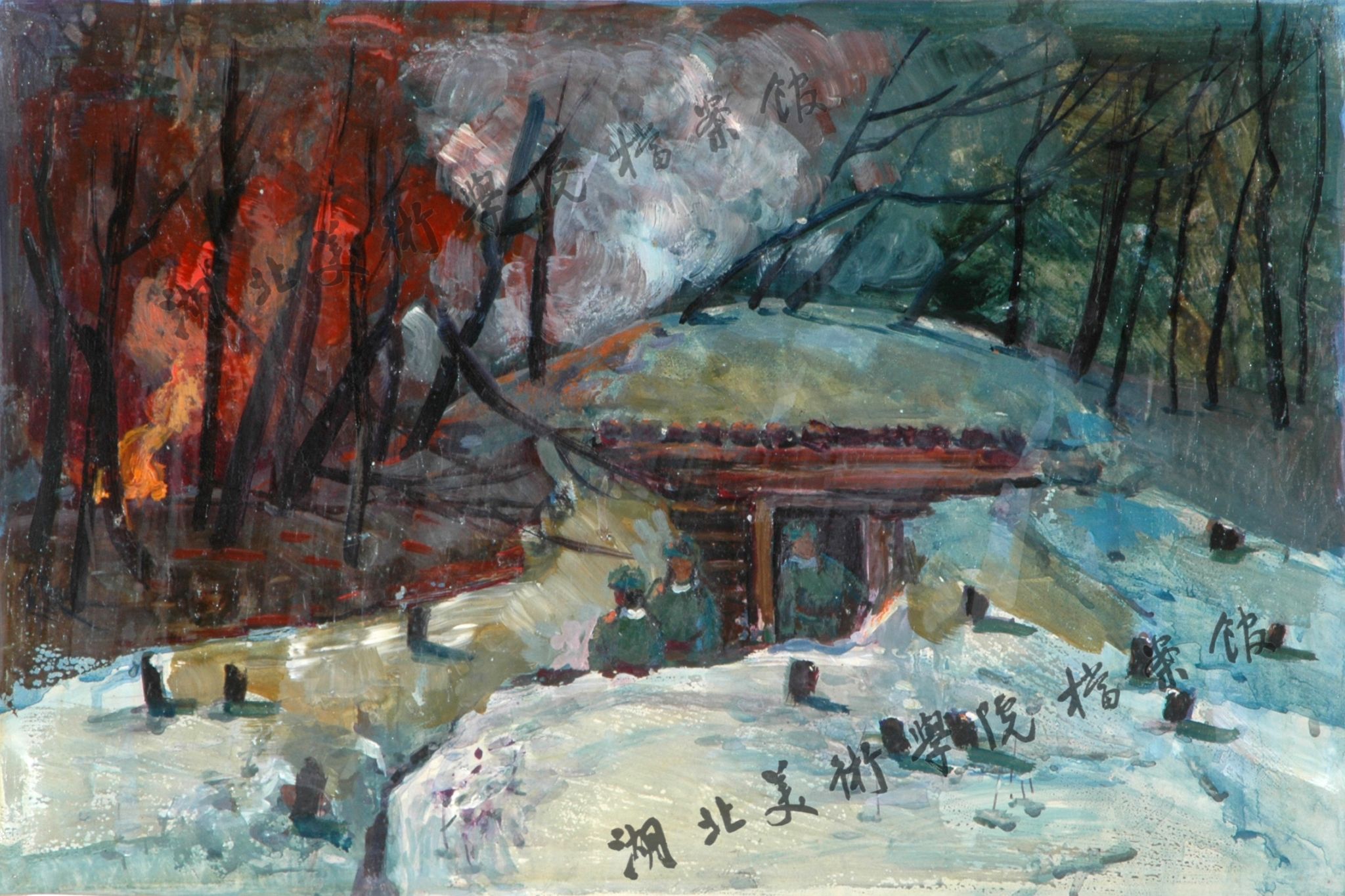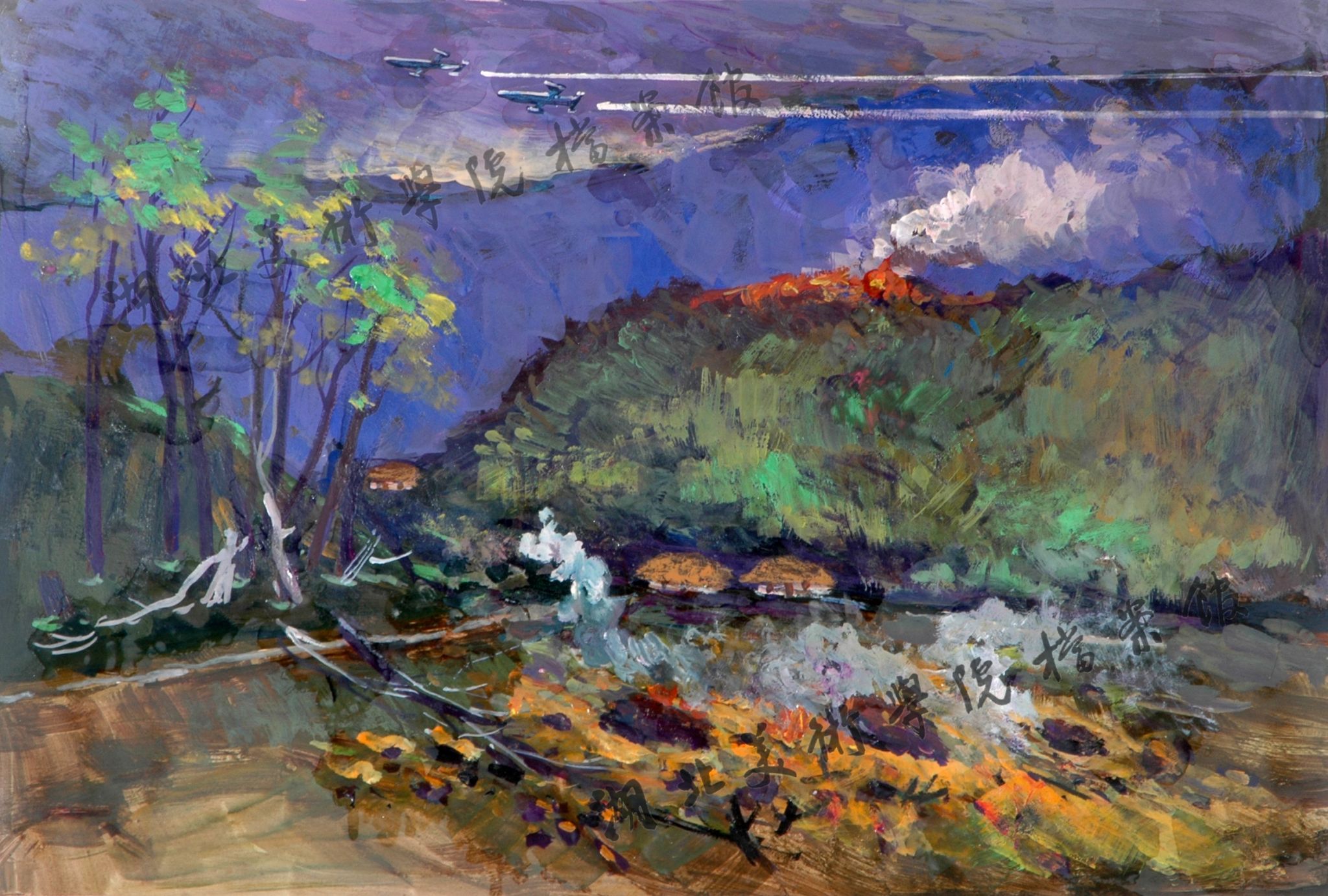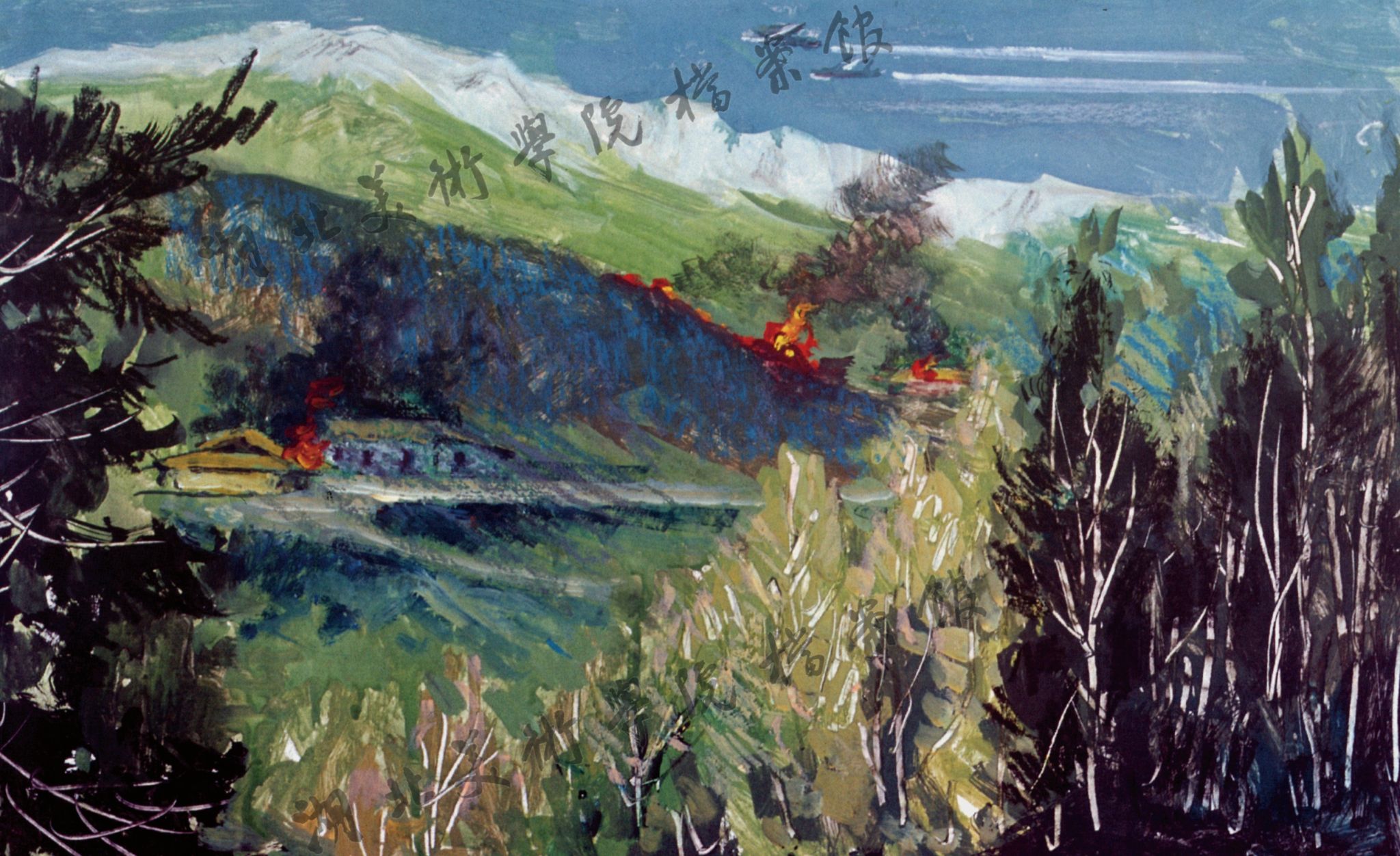 《燃烧的村庄》48cm×30cm水粉2001年