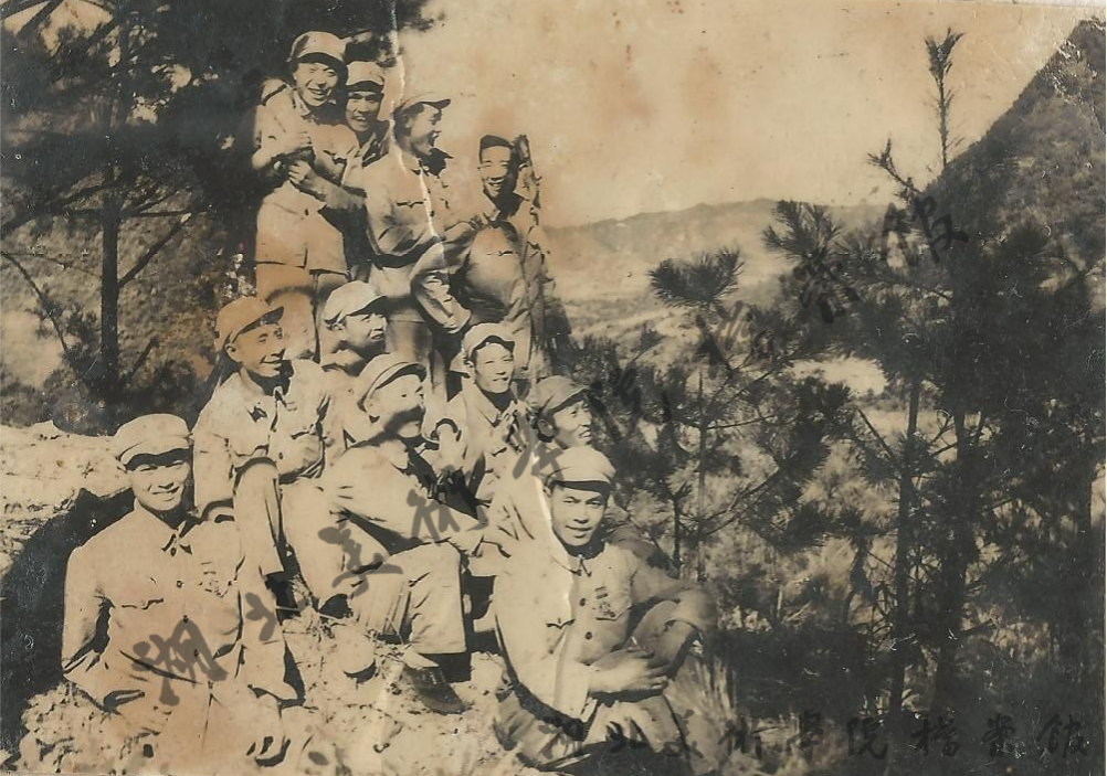 宁璘(前排左一)在朝鲜战场山岗上与战友合影