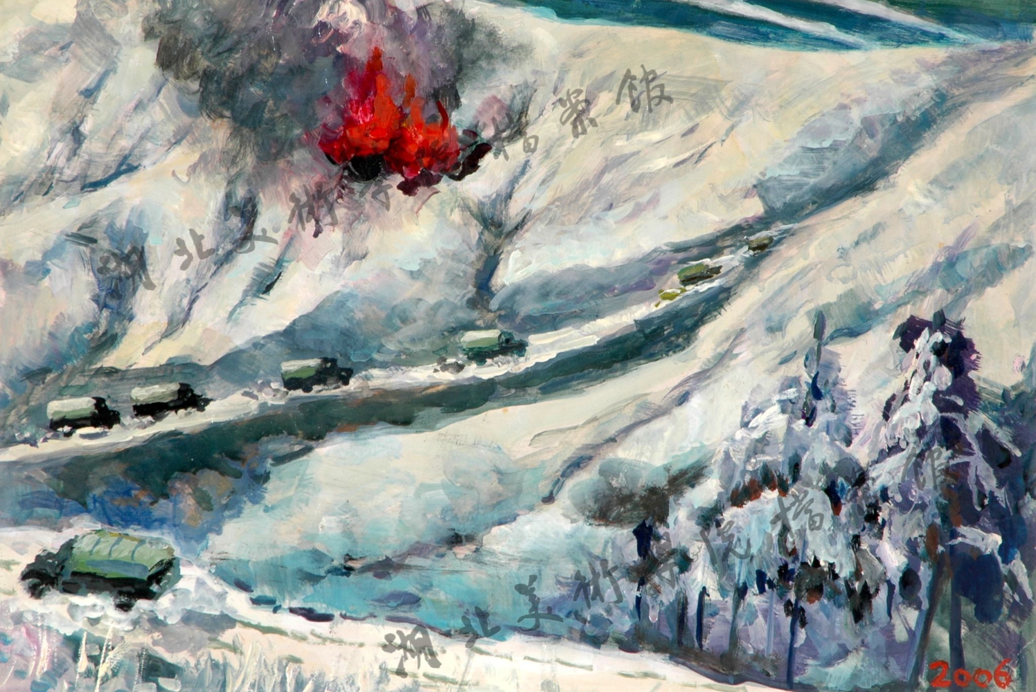《被炮火封锁的交通线》47cm×33cm水粉1999年