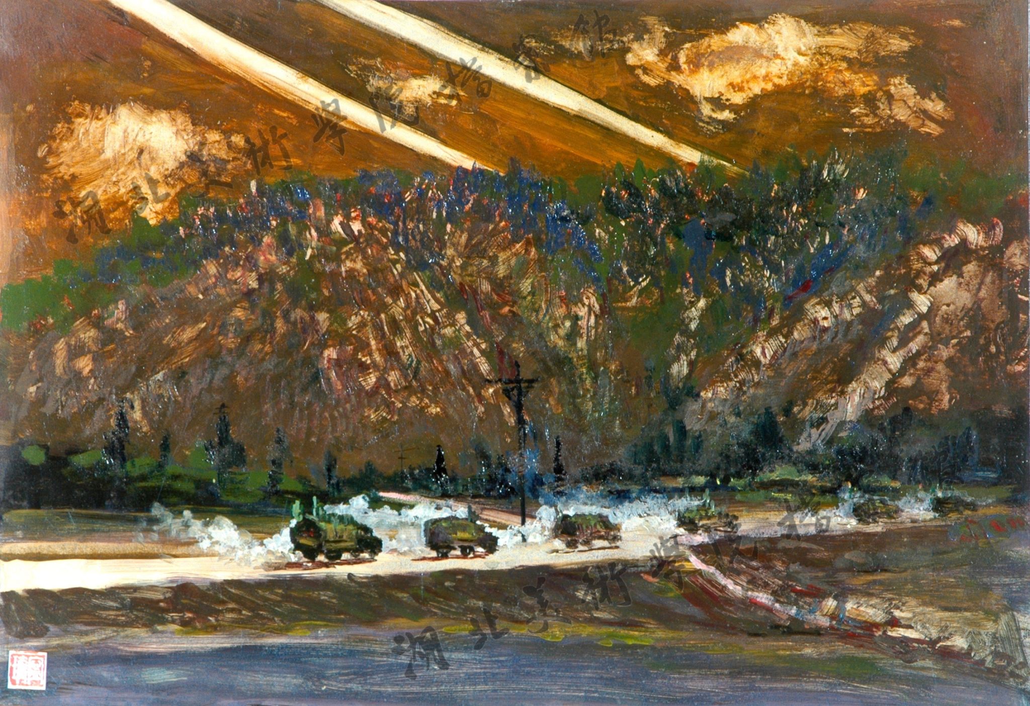 《向三八线挺进》48cm×30cm 油画 1999年