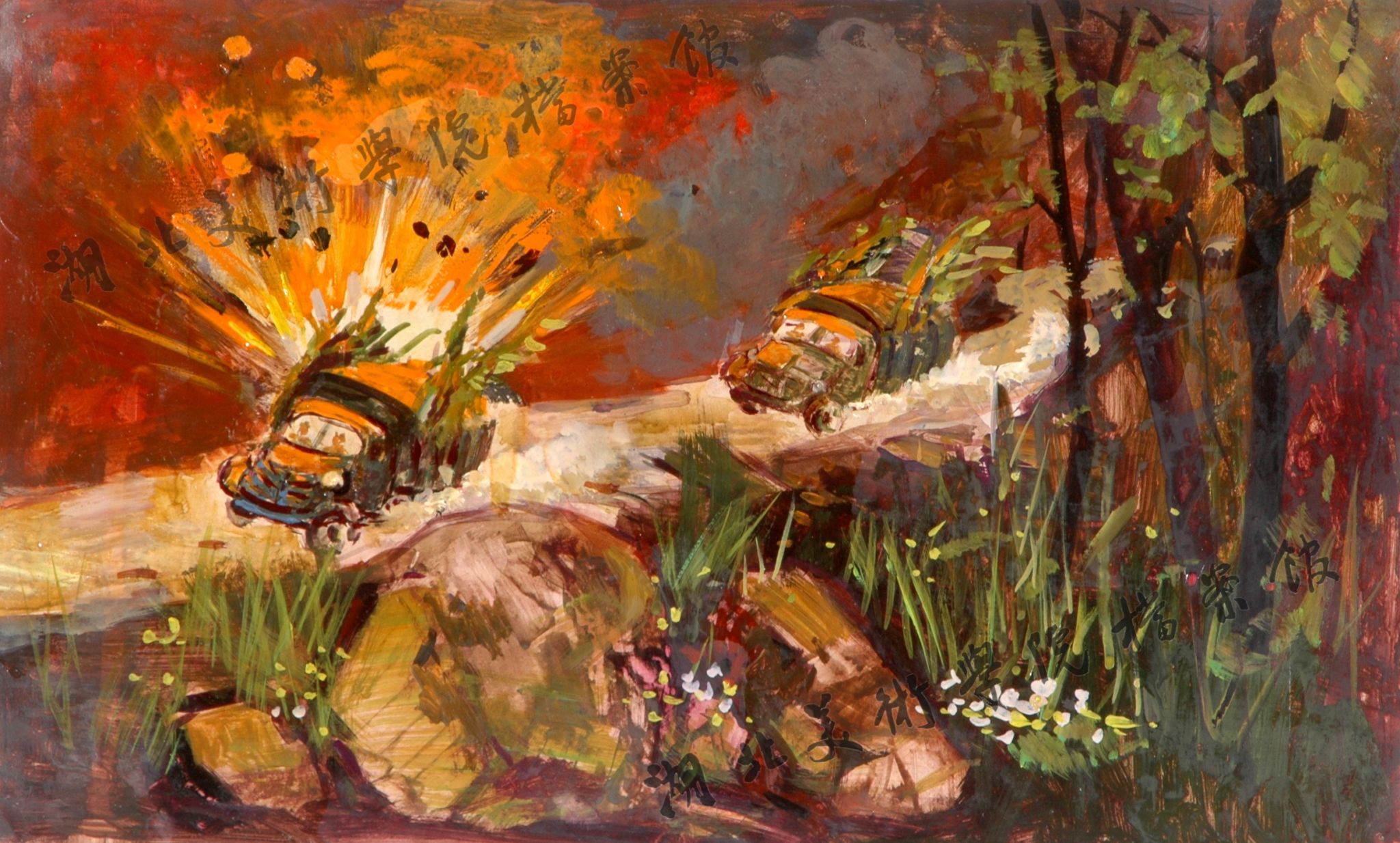 《遍地硝烟》47cm×32cm水粉2001年