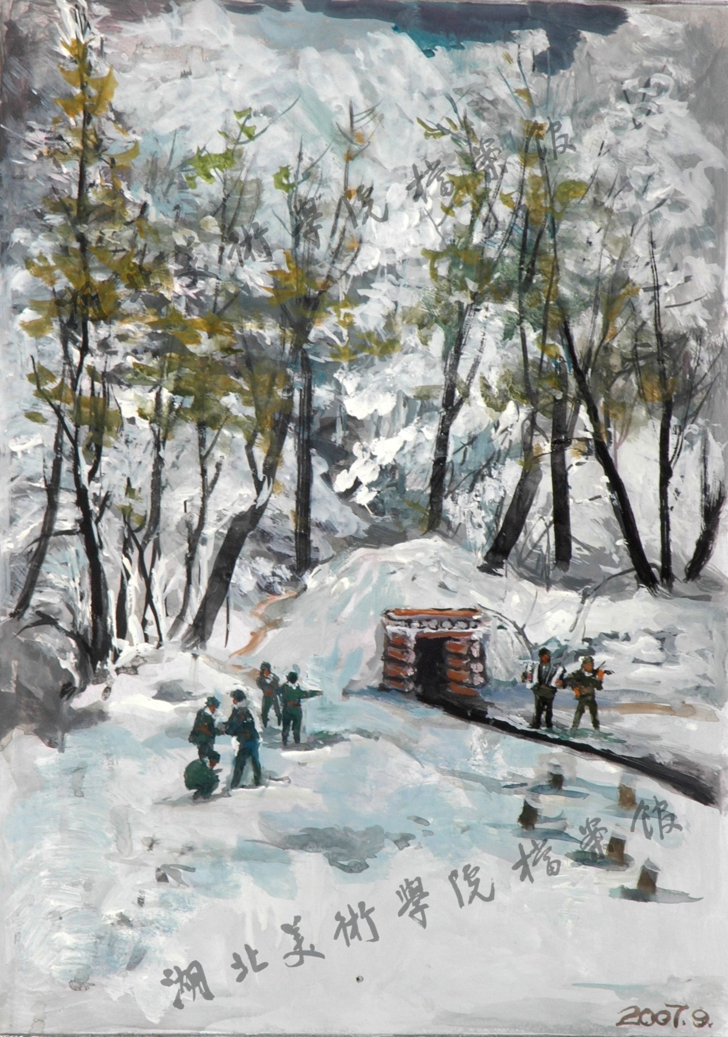 《雪后初晴赴前线演出》48cm×32cm水粉 1997年