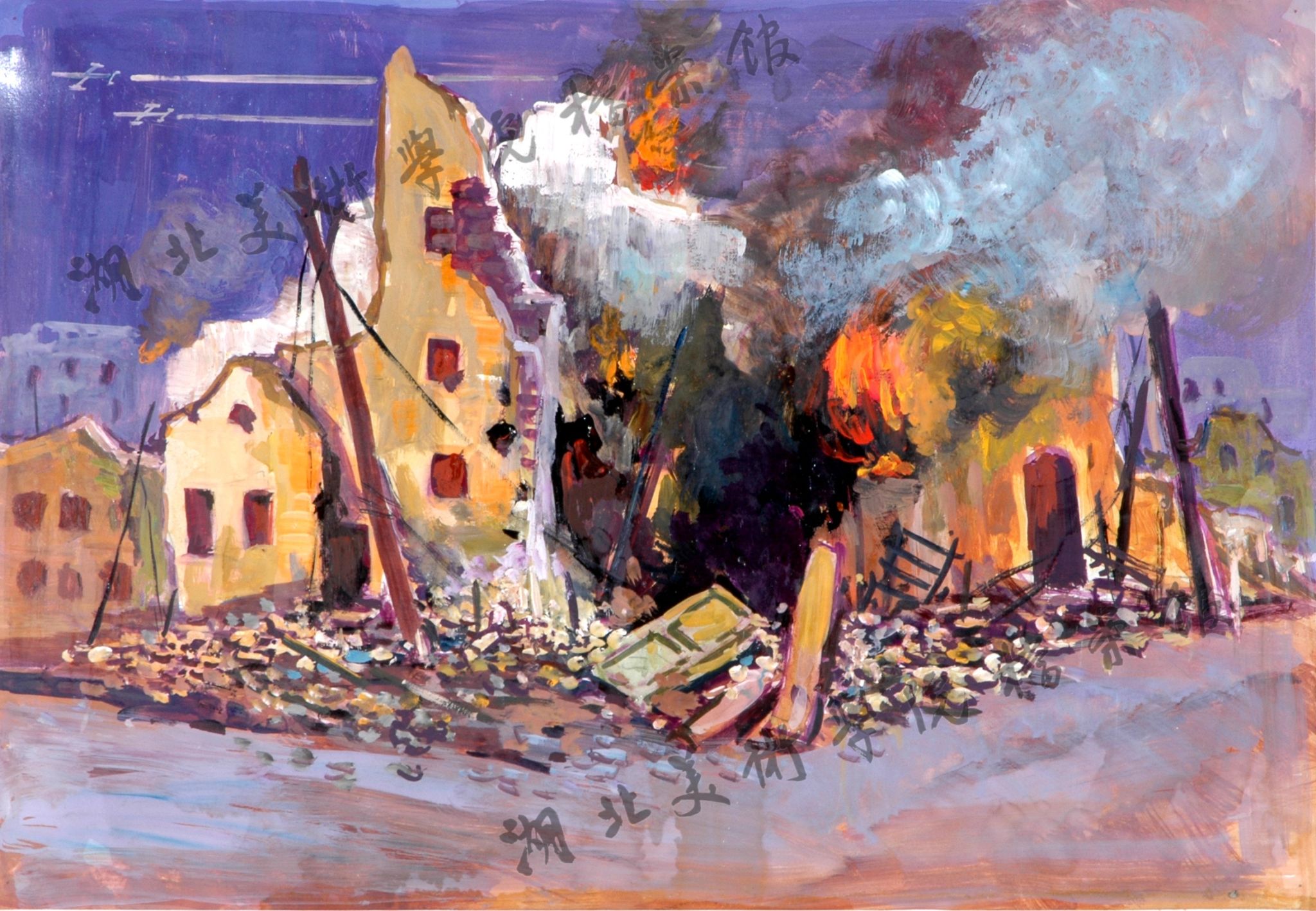 《城市被炸》48cm×34cm水粉2001年