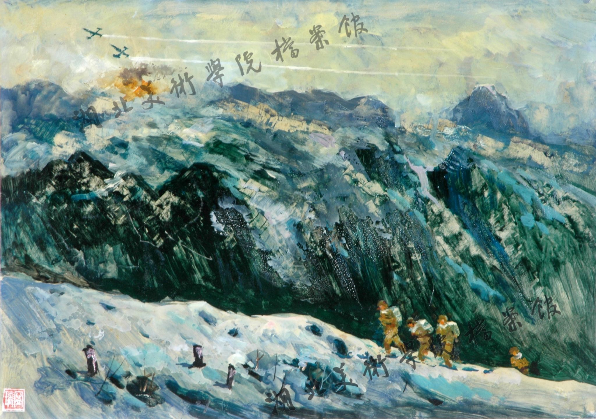 如今,105岁高龄的宁璘教授依然健在,他的人生轨迹与建校105周年的湖北美术学院同龄共振。从武昌艺专的画室到朝鲜战场的硝烟,再到景德镇陶瓷大学的三尺讲台,一生坚守“艺术报国”的赤诚信念。他笔下的抗美援朝题材作品,早已超越个人记忆的边界,成为民族集体记忆与不朽精神的载体。其中《向三八线挺进》一画,既定格了烽火岁月的壮阔瞬间,更镌刻了一代人在国家危难之际“以笔为刃”的初心与担当,这段熠熠生辉的人生印记,已永远载入百年湖美校史,终将成为一部传承红色基因、培根铸魂育人的生动教材。