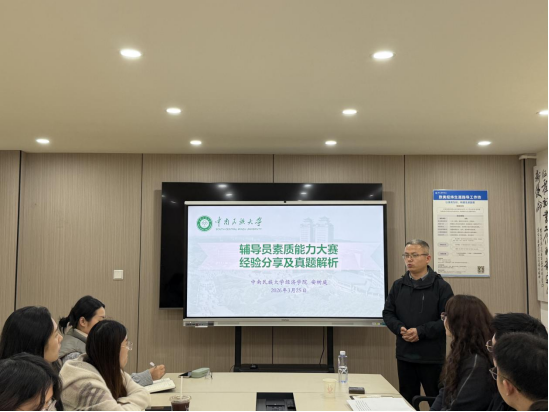 培训紧扣辅导员素质能力大赛核心要求,以理论筑基、实战赋能、以赛促行为主线,系统拆解大赛备赛逻辑与育人工作方法。安树庭老师结合自身参赛与指导经验,从一个理论、四种斗争、四方维度展开讲解,聚焦大赛全流程实战要点,围绕基础知识测试、学情分析、案例研讨、谈心谈话四大核心环节逐一拆解。理论测试明确党的创新理论、思政重要文件、“四史”等考点,强调“省赛重基础、国赛重论述”备赛方向;案例研讨提炼“辨本质、抓主次、出实招、升启示”思路,结合典型真题示范提问与作答;谈心谈话传授“瞄准诉求、双向共情、划分阶段、注重长效”技巧,提供标准化模板,有效提升辅导员沟通引导与问题处置能力。