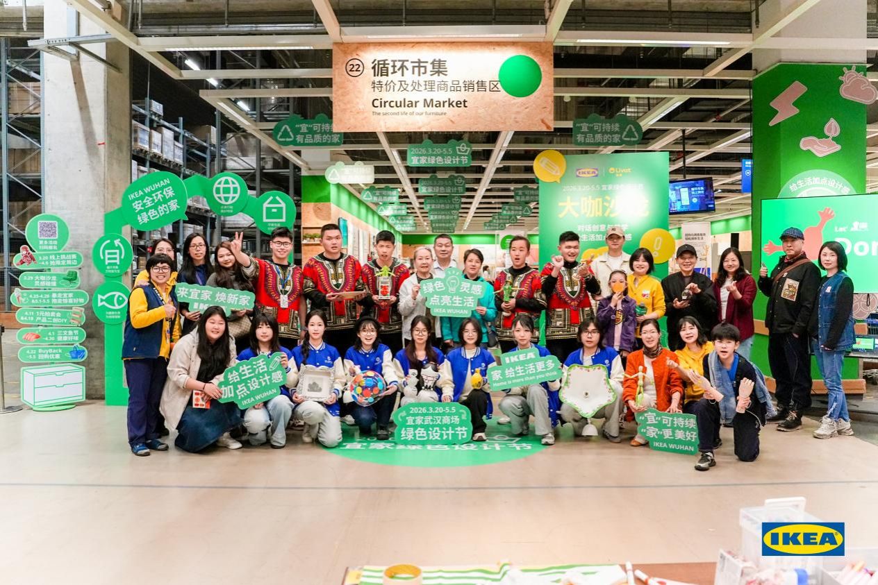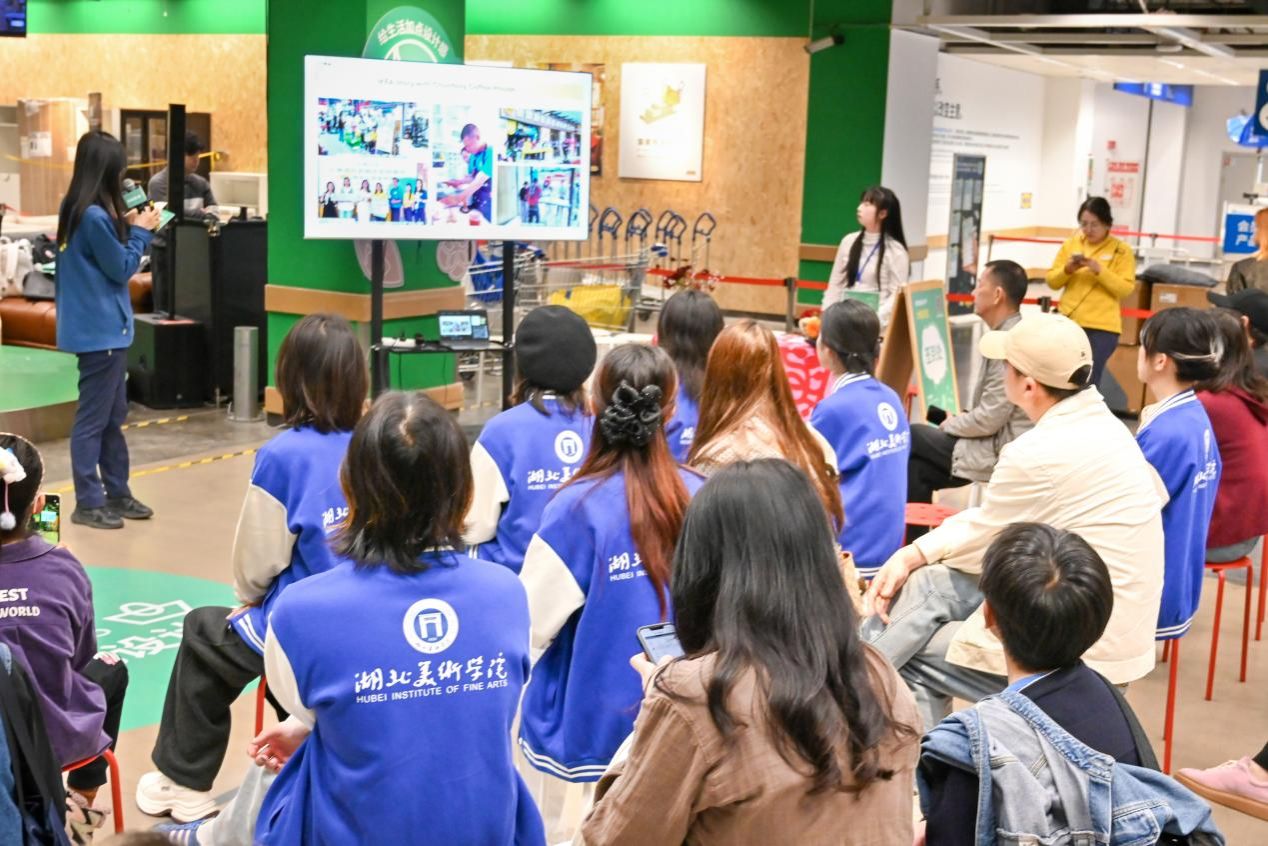 3月29 日下午,由宜家武汉商场主办的“绿色设计节-大咖沙龙”活动在循环市集顺利举办。视觉艺术设计学院辅导员及8名学生设计师参与本次活动,与宜家设计团队、花城社区居民及春风咖啡屋工作者们共同探索绿色环保设计与公益实践的融合路径。
