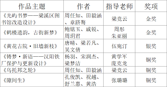 近日,2025年度“学院杯”中国室内与环境设计大赛获奖结果正式公布。湖北美术学院环境艺术学院师生团队凭借扎实的专业功底、鲜明的创新理念与深厚的人文关怀,在全国众多参赛选手中脱颖而出,获金奖2项、银奖1项、铜奖3项,周彤、梁竞云、黄学军、朱亚丽、伍宛汀、庞克龙、张璐璐等7位教师荣获“优秀指导教师奖”,充分展现学院在环境设计专业领域的育人成效与综合学科实力。