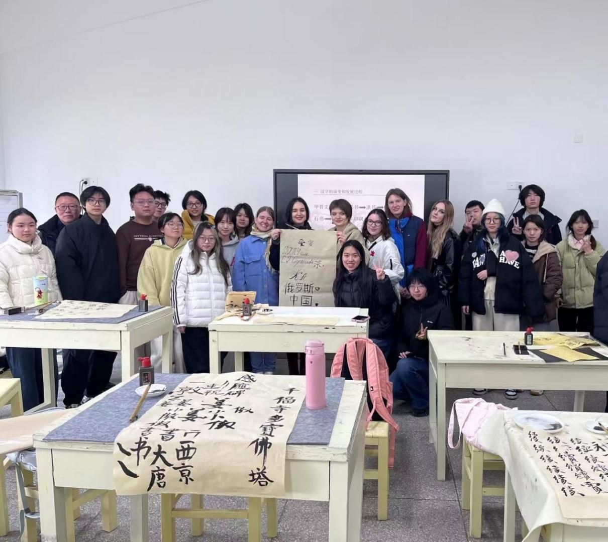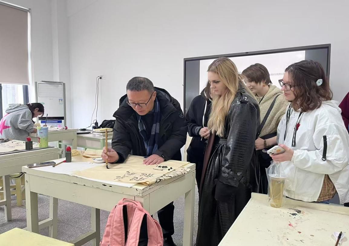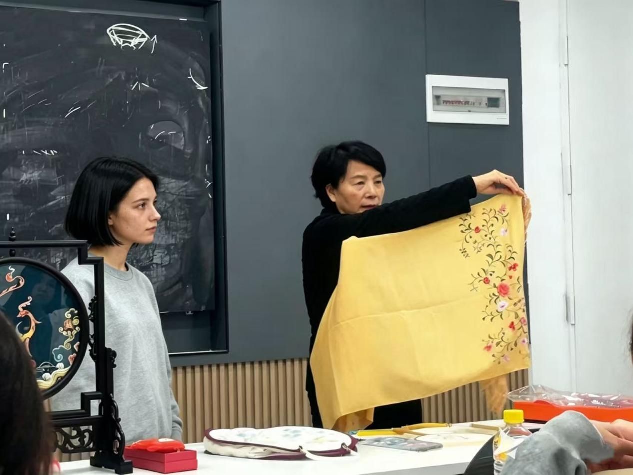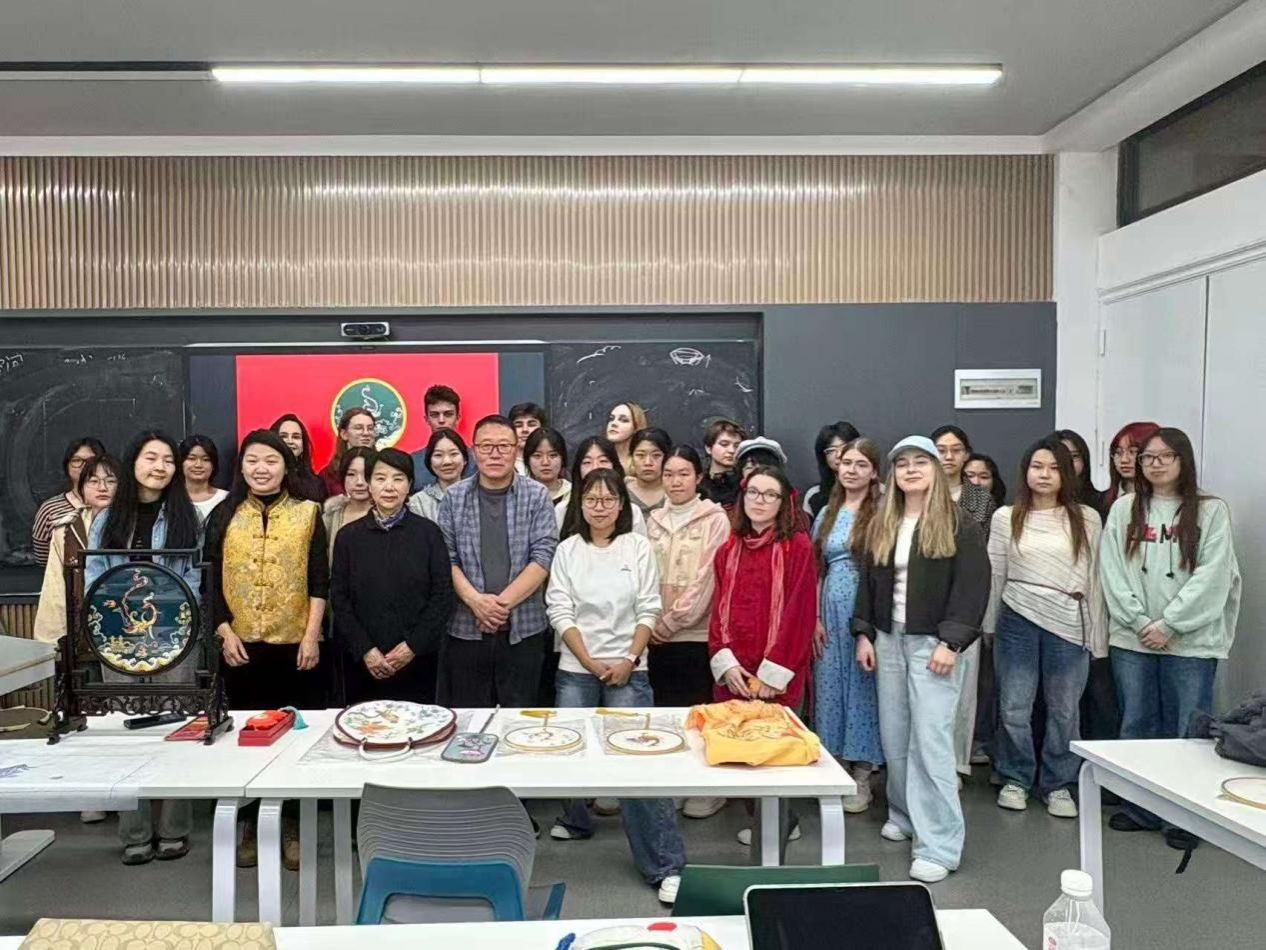 近日,艺术教育学院面向俄罗斯国立工艺美术大学来华交换生,组织开展汉绣、书法两项中国传统非遗沉浸式体验活动。活动以实践体验为载体,让两国学生近距离领略中华优秀传统文化的独特魅力,持续打造两校青年艺术交流常态化互动平台。