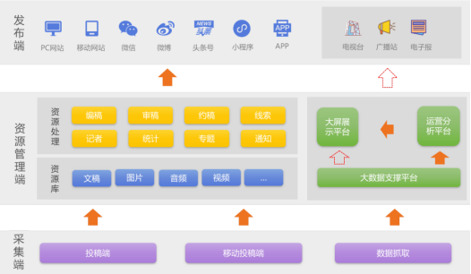 生产渠道统一化,实现新闻采编发等业务一体化,构建校园新闻生产闭环;优质资源可复用,实现资源智能管理、深度融合,为新闻生产提供有力支持。