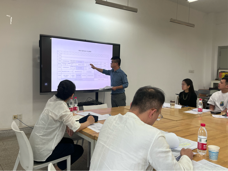 两位专家分别就各专业培养方案进行论证。石元伍教授指出,专业培养目标应与专业课程相对应,同时,课程需要紧跟时代潮流,明晰定位,并强调了培养新科技、数字化人才的重要性。王柯教授指出,美育思政课程融合是专业新的发展趋势,要将这一观念润物细无声地融入日常教学中;同时,要让学生更多关注设计前沿理论,关注学科发展趋势。
